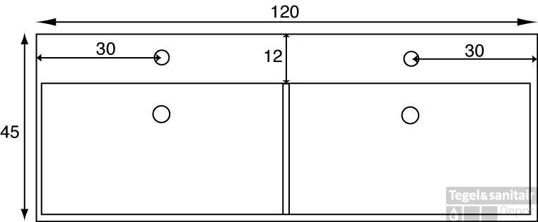 Dubbele meubelwastafel 120×45 cm.2x kr.gat m/overl