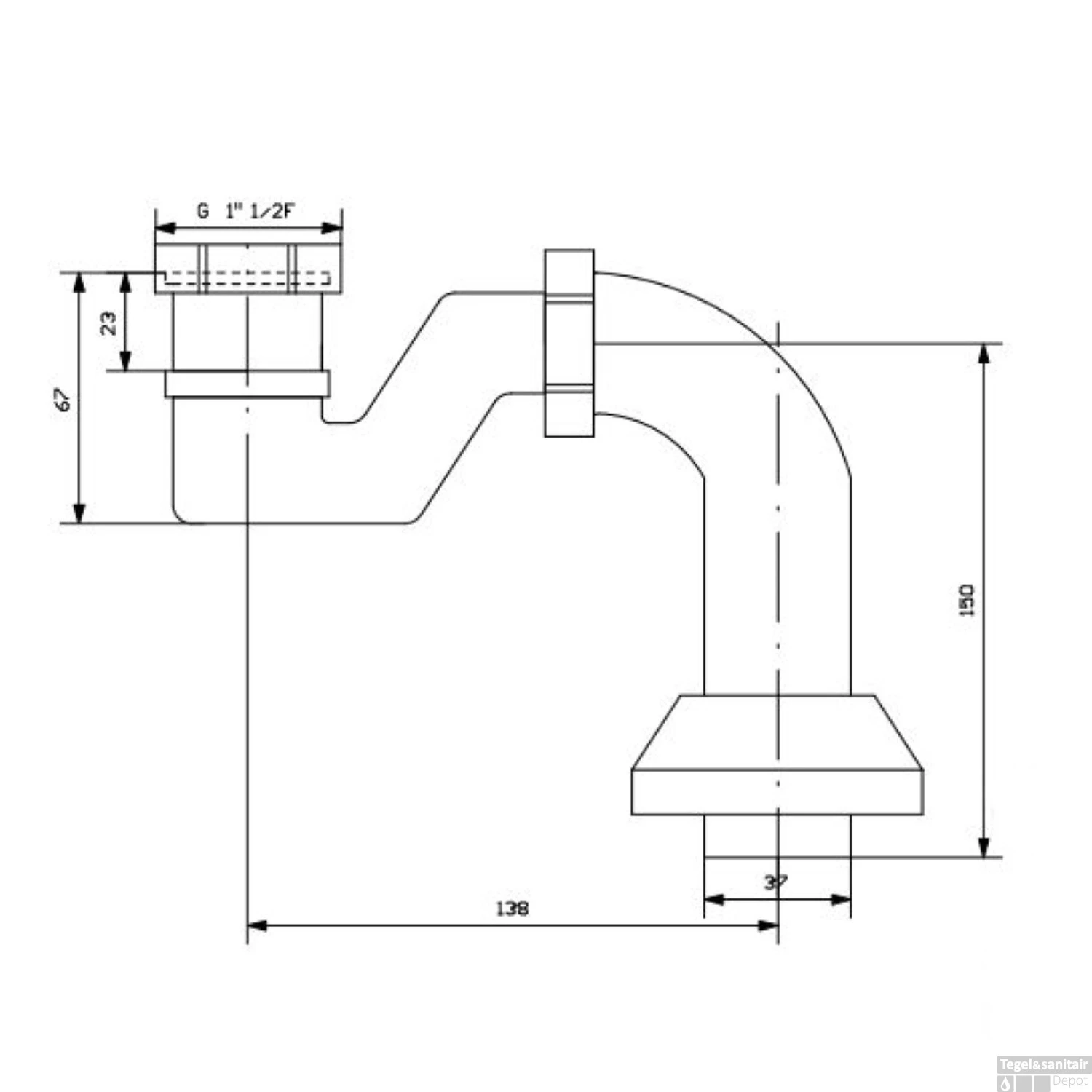 - Afmeting afvoergat: 52 mm