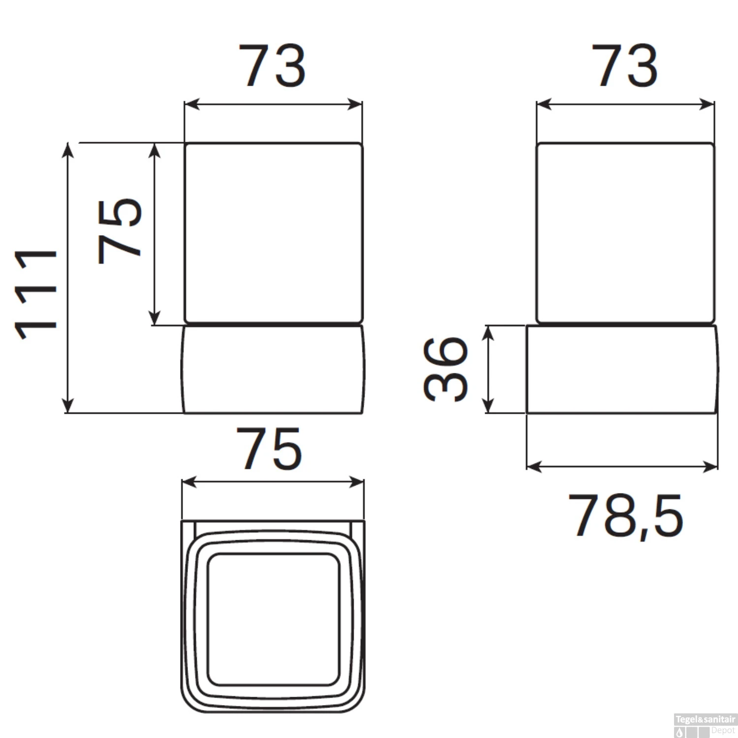 Deze bekerhouder van het populaire badkamermerk Haceka behoort tot de serie ‘Aline Grey’. De houder is gemaakt van aluminium en is afgewerkt in de kleur mat grijs. De vierkante, witte beker zelf sluit naadloos aan op deze houder en is gemaakt van keramiek. Het artikel heeft een breedte van 7,4 cm en een hoogte van 11,4 cm.