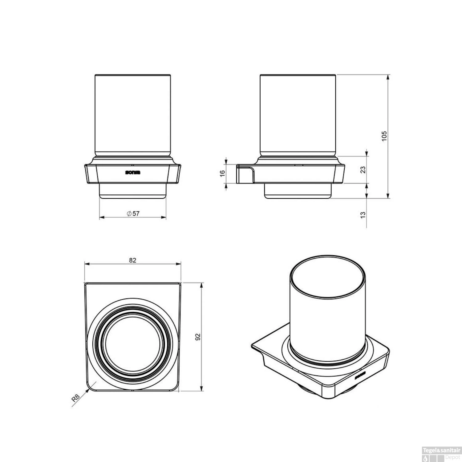 De bekerhouder heeft een hoogte van 10.5 cm, een breedte van 8.2 cm en een diepte van 9.2 cm.