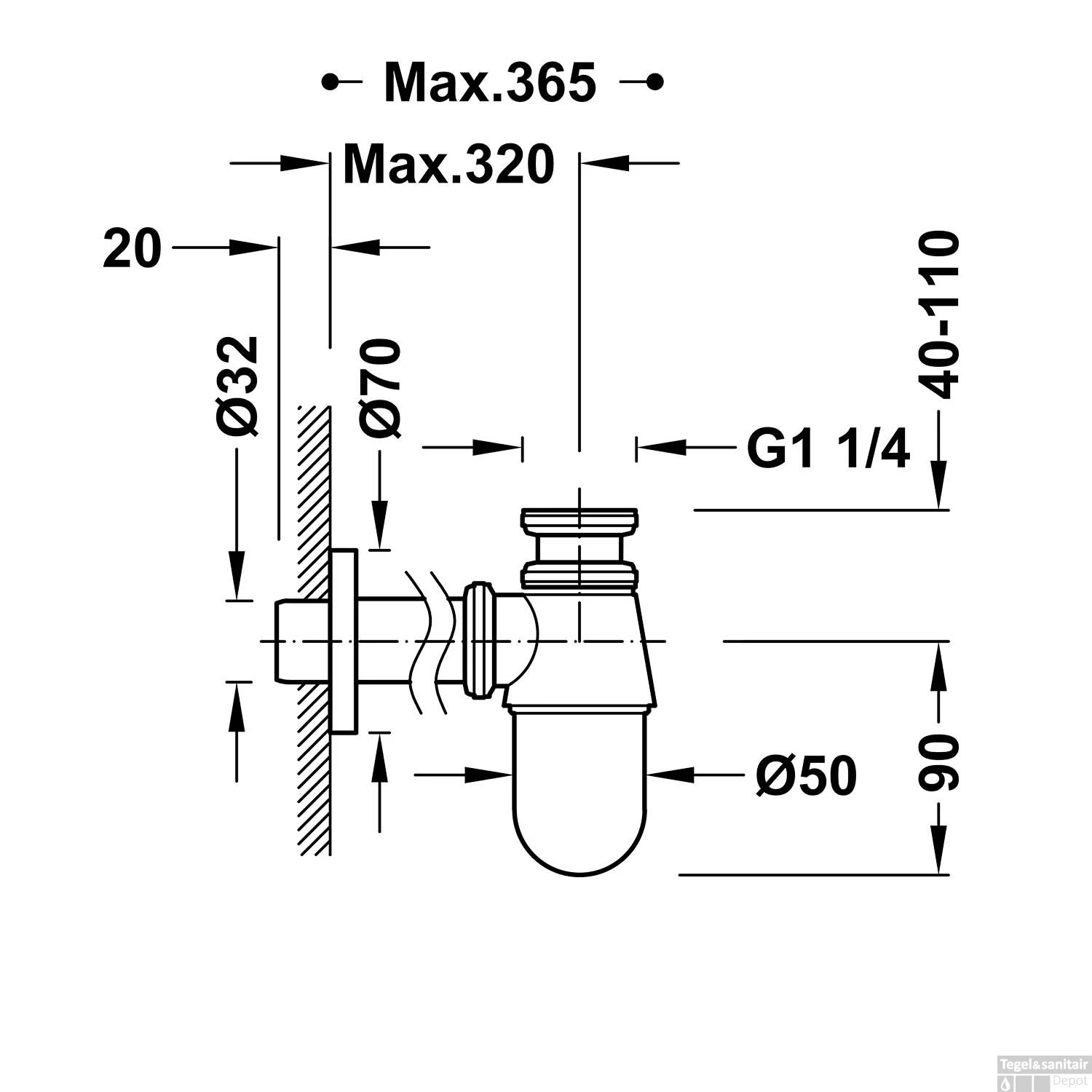 - Aansluiting: 1 1/4″