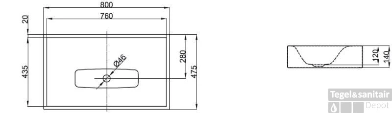 Wastafel 80×47.5×14 cm. zonder kraangat