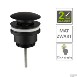 Een waste houdt in dat het mogelijk is de afvoer van de wasbak af te sluiten of te openen. Een clickwaste wordt bediend door met uw duim op te drukken. De eerste keer drukken dicht, de tweede keer drukken open. Een losse stop is daarom niet meer nodig.