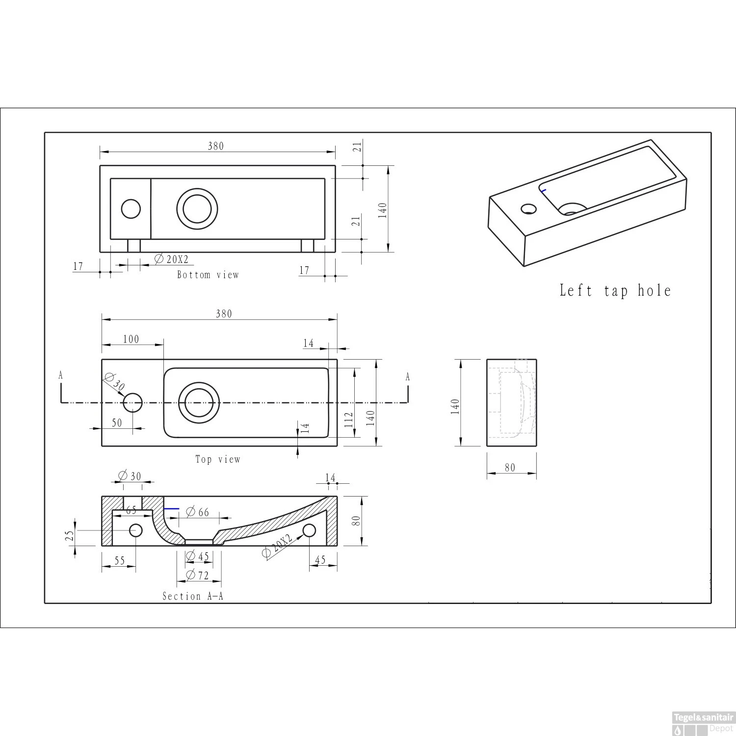 Specificaties BWS Hardsteen Fontein Zwart Smal 38x14x8 cm (Kraangat Links):