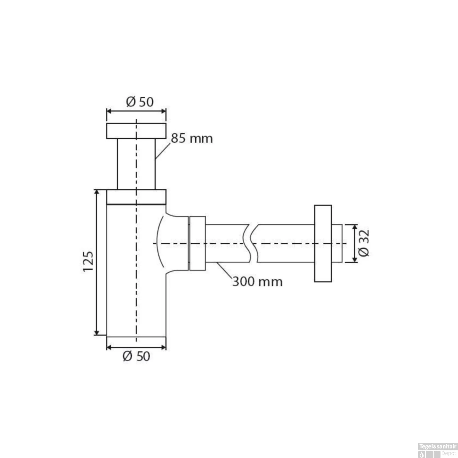 Specificaties BWS Luxe Bekersifon Rond Chroom 5/4 Incl Muurbuis en Rozet: