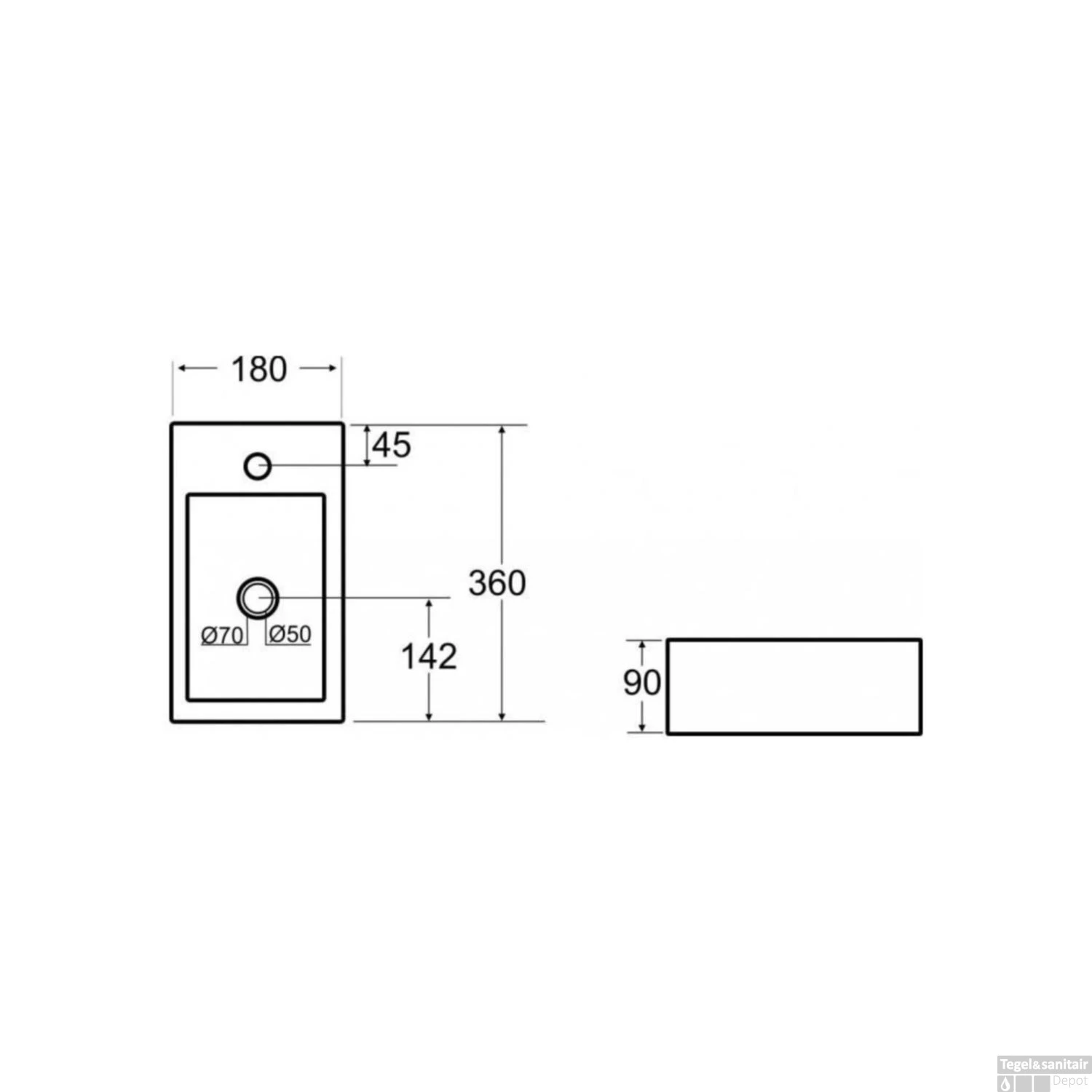 De Mini fontein Blong heeft een breedte van 36 centimeter, een diepte van 18 centimeter en een hoogte van 9 centimeter.