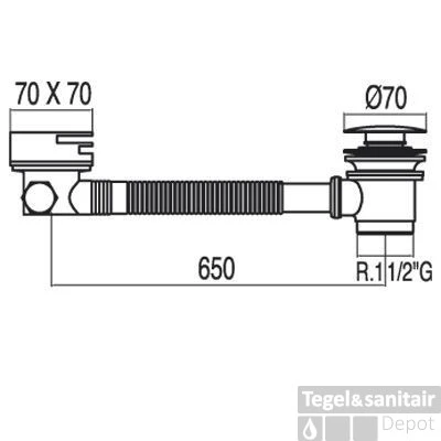 Deze badafvoerplug met overloop is van het merk Tres. goed te combineren met een inbouwkraan.Â