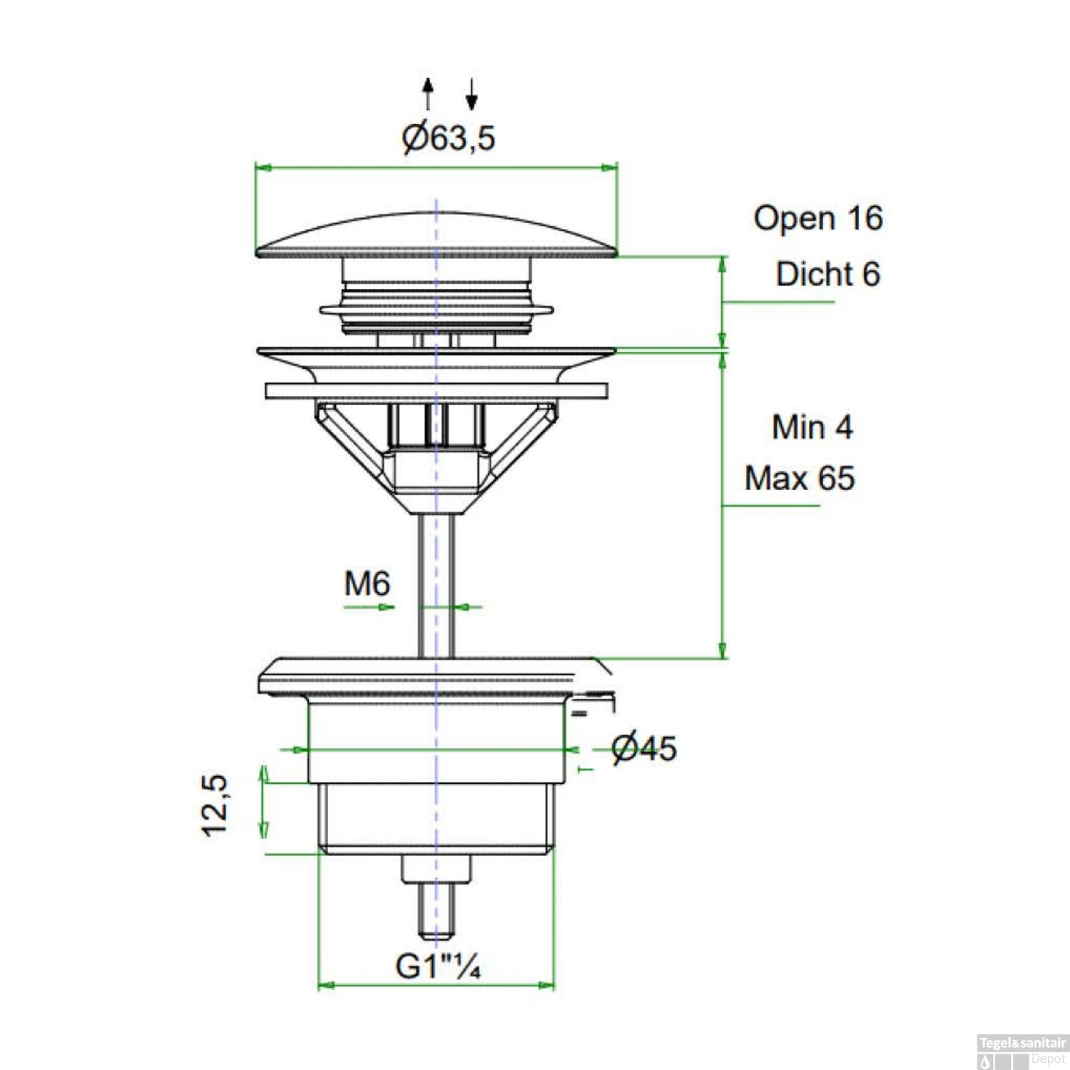 Het is een Clickplug. Dat houdt in dat u hem alleen maar hoeft in te drukken om ervoor te zorgen dat water niet door kan lopen. De plug heeft een diameter van 6.35 cm en is in de kleur gunmetal.