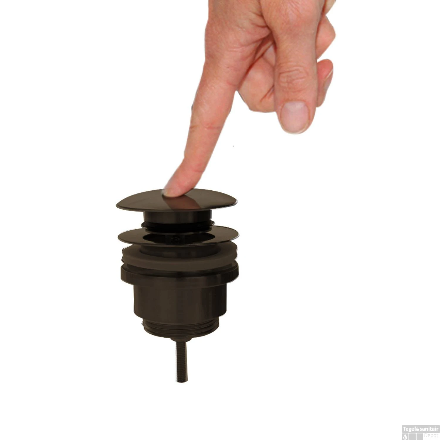 Een waste houdt in dat het mogelijk is de afvoer van de wasbak af te sluiten of te openen. De gunmetal clickwaste wordt bediend door met je duim er op te drukken. De eerste keer drukken dicht, de tweede keer drukken open. Een losse stop is daarom niet meer nodig.