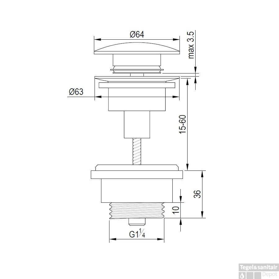 Clickwaste Brauer Afvoerplug Messing Binnenwerk 5/4 Koper