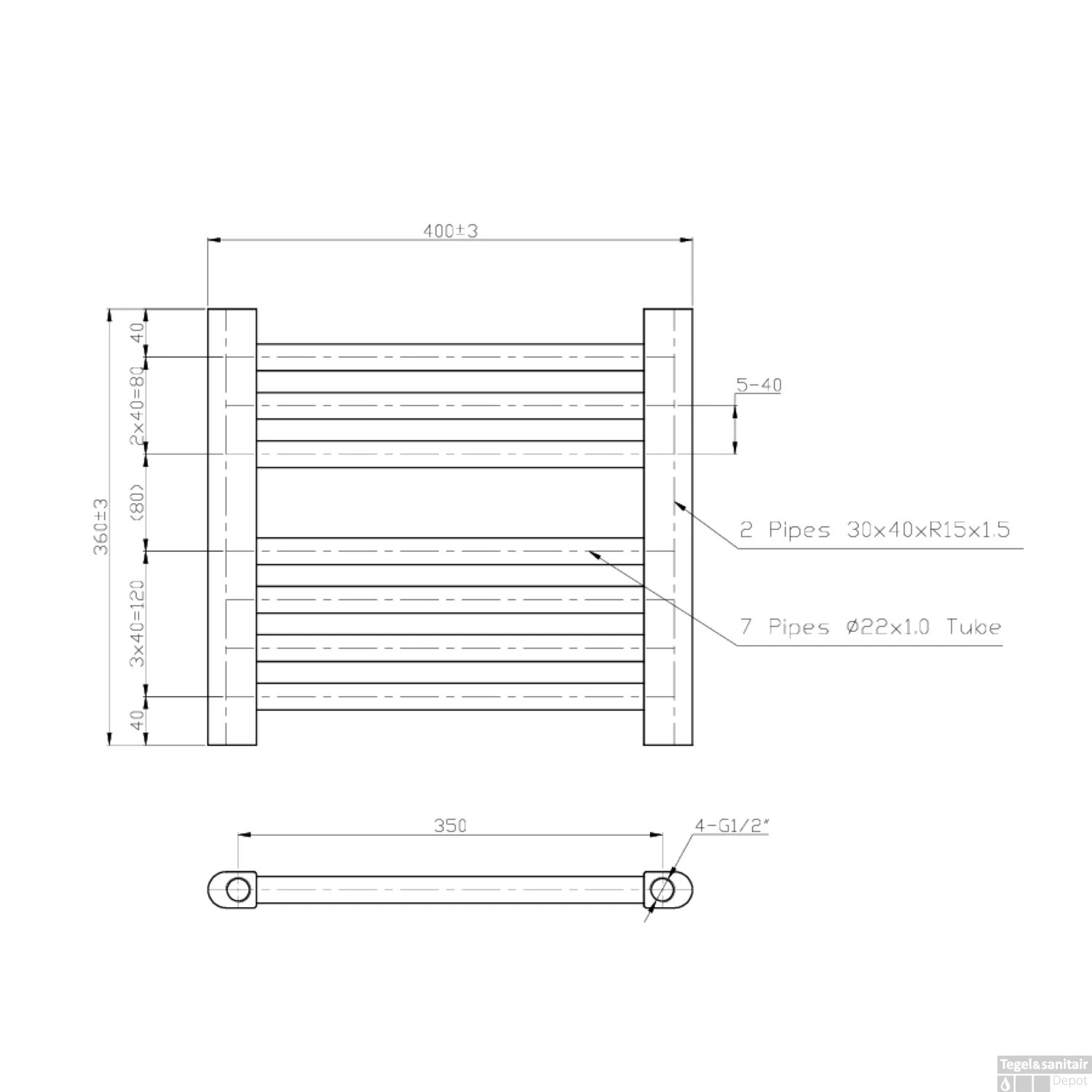 Specificaties Designradiator Boss & Wessing Vertico Multirail 36×40 cm Wit Zij-Onderaansluiting: