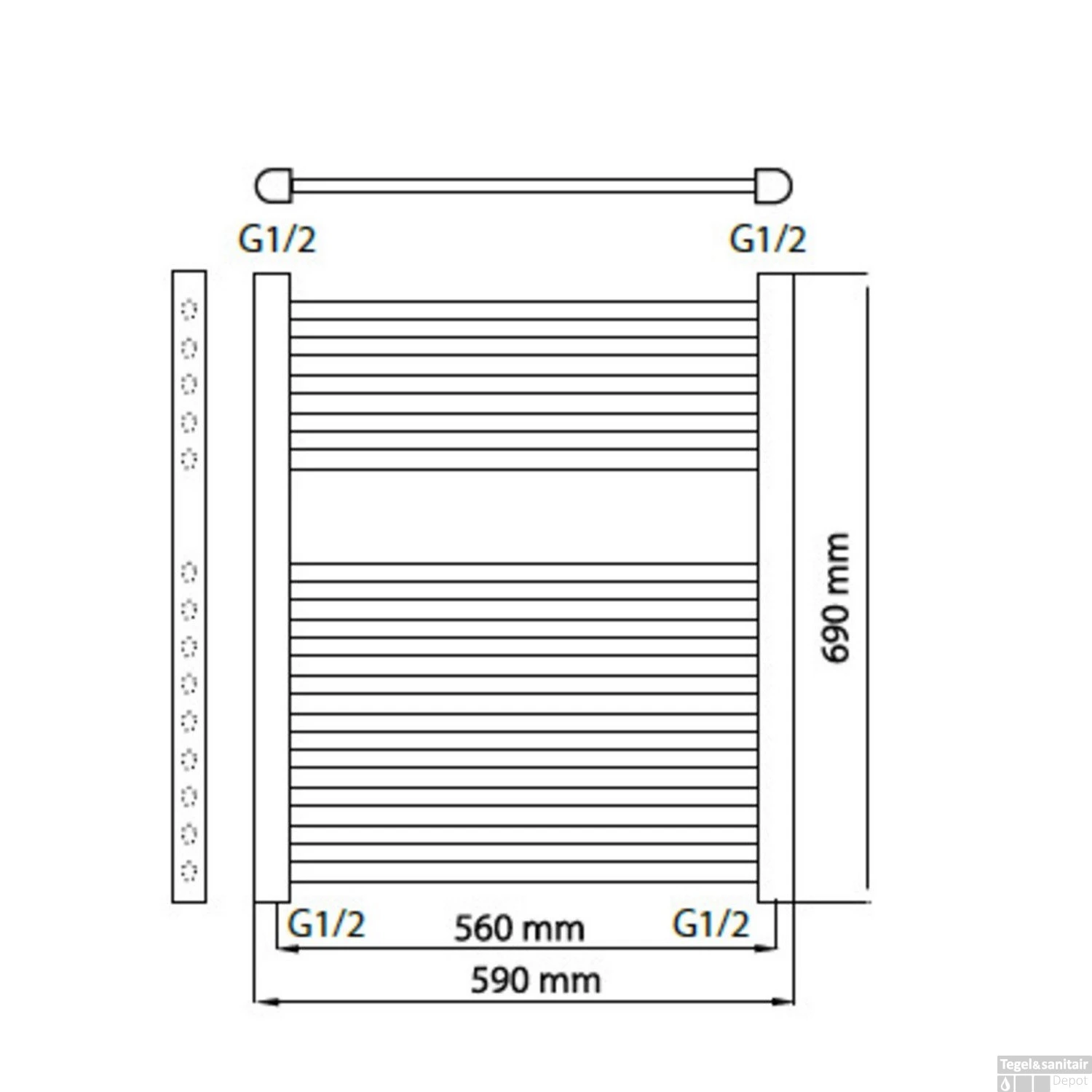 De Sinai Adoria designradiator is van het merk Haceka en heeft een eigentijds karakter. De radiator heeft een breedte van 59 cm en een hoogte van 69 cm. Het vermogen van de radiator bedraagt 367 Watt. De buizen hebben een ronde vorm en zijn afgewerkt in een witte kleur. Verder heeft de designradiator een onderaansluiting en wordt deze standaard geleverd met een bevestigingsset, een ontluchter en een blindstop.