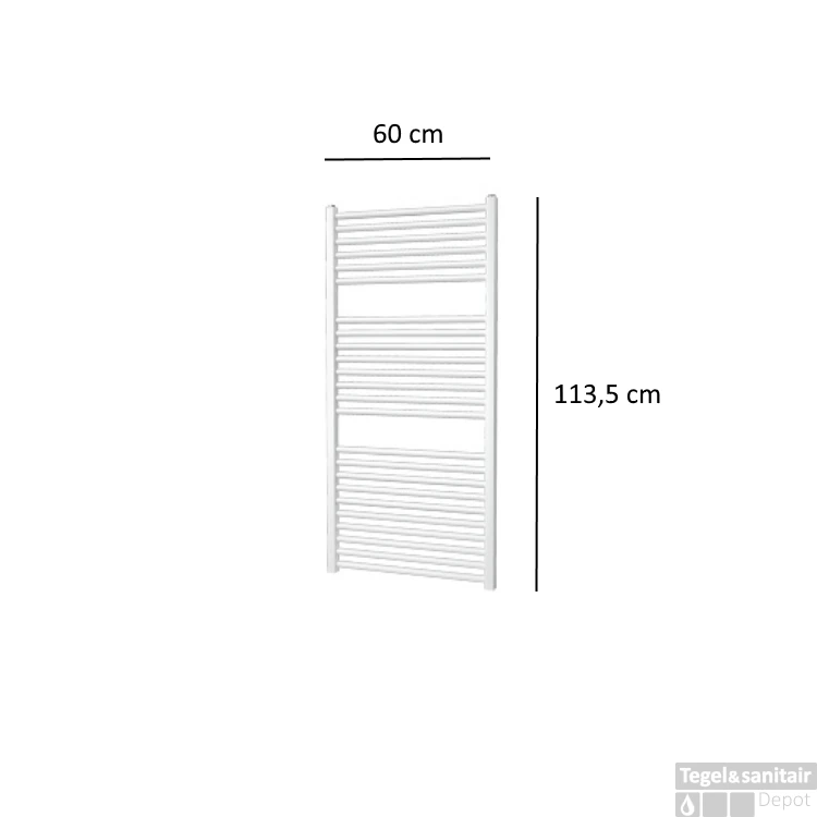 Deze designradiator van de Serie Quadro kan door zijn eenvoudige design geplaatst worden in iedere gewenste ruimte. Met het ingetogen ontwerp is de handdoekradiator elegant en stijlvol. Deze designradiator heeft vier aansluitpunten en kan in combinatie met een elektrisch verwarmingselement gebruikt worden als elektrische verwarming. De breedte van deze radiator is 60 cm, de hoogte 113,5 cm en het vermogen bedraagt 627 Watt.