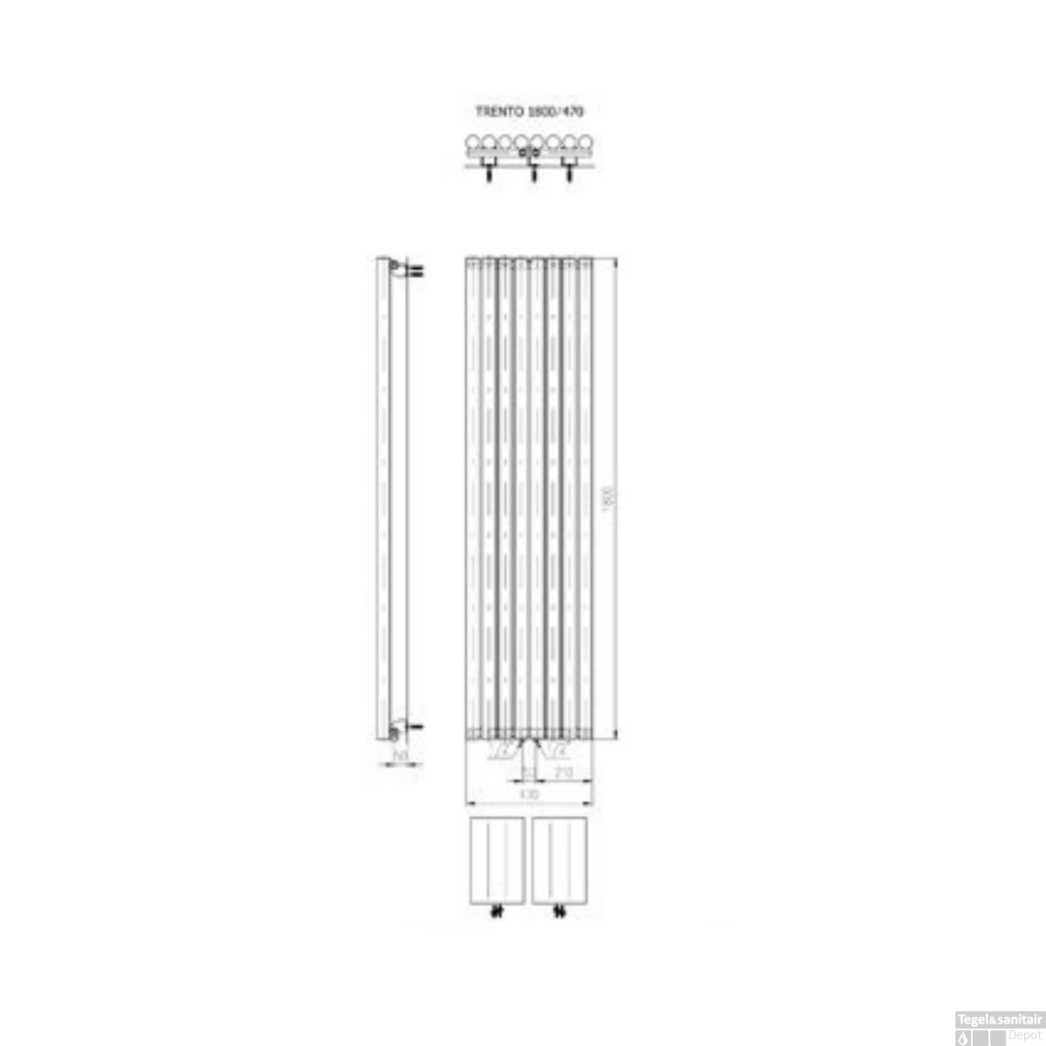 Specificaties Designradiator Plieger Trento 1086 Watt Middenaansluiting 180×47 cm Wit: