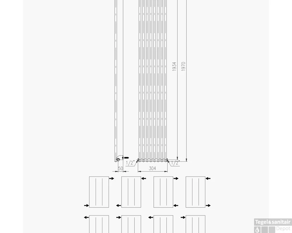 Specificaties Designradiator Plieger Venezia Enkel 1970x304mm 970W Zandsteen: