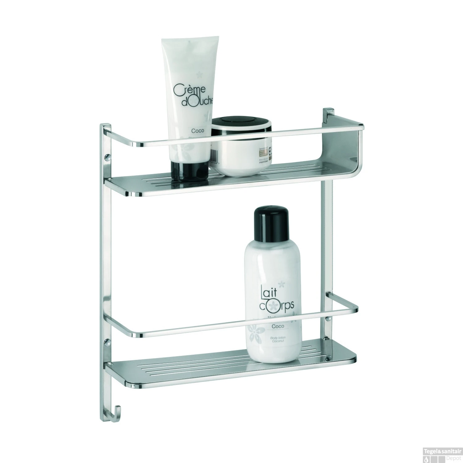Het Palatino doucherekje is van het merk Allibert. Het doucherekje is vervaardigd uit hoogwaardig, glanzend inox en is voorzien van twee schappen waar u enkele badkamerartikelen op kwijt kunt. Het betreft een model dat aan de wand bevestigd dient te worden. Het doucherekje heeft een breedte van 31,9 cm, een diepte van 11,3 cm en een hoogte van 37,7 cm. Aan de onderzijde bevindt zich nog een klein haakje waar u bijvoorbeeld een douchewisser op kunt hangen.