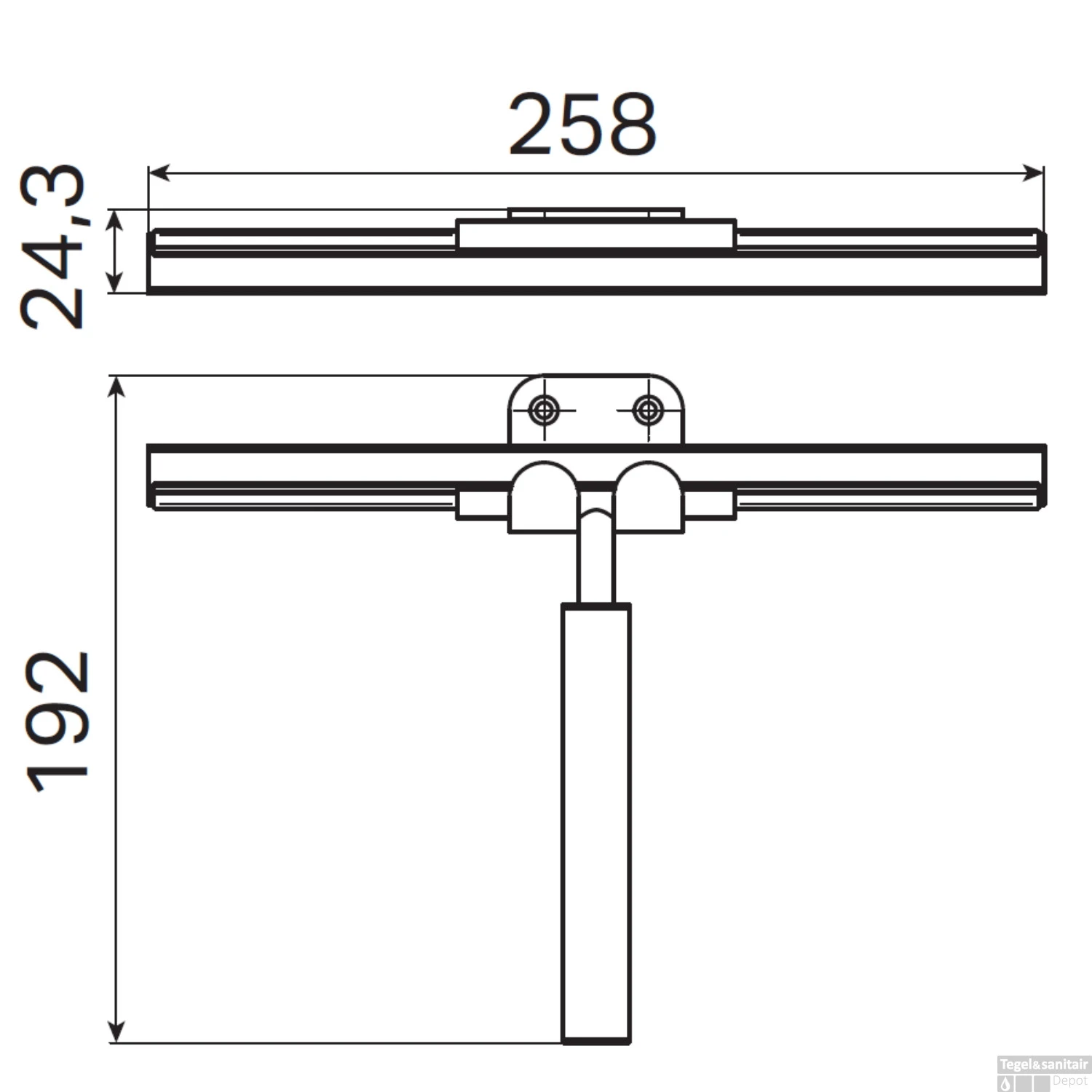 De hoogte van deze douchewisser is 19,2 cm, de breedte is 25,8 cm en de diepte is 2,43 cm. Het uiteindelijke gewicht van deze douchewisser is 173 gram. Deze douchewisser is gemaakt van geborsteld roestvrij staal, en dat alles in een mat zwarte kleur.