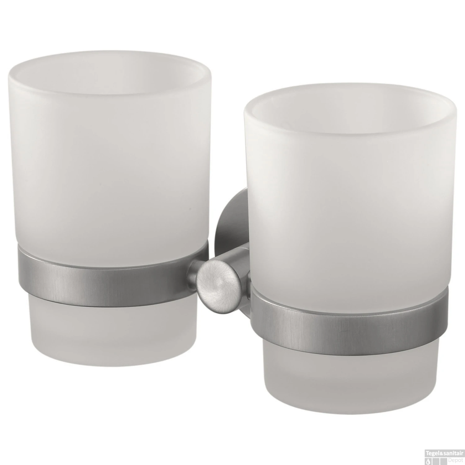 Richt uw badkamer compleet in met Kosmos, onze meest succesvolle serie. U kunt volop combineren met kranen, meubels, douchecabines en accessoires. Deze dubbele glashouder van mat glas is erg makkelijk om bijvoorbeeld en voor uw tandenborstel te gebruiken en de ander om uit te drinken. Of gewoon: ieder een eigen glas. De bekers zijn makkelijk uitneembaar. De bekers zijn getest en voldoen aan de Europese normen voor artikelen die met voedsel in aanraking komen. Dit betekent dat de bekers geen gevaarlijke stoffen afgeven en dat u er gegarandeerd veilig uit kunt drinken.