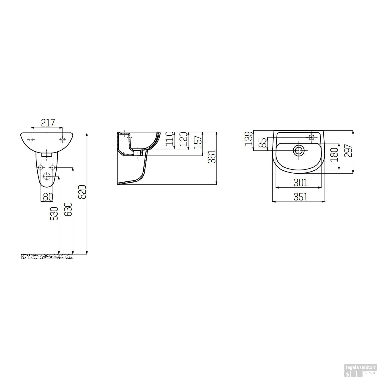 Specificaties Fontein Boss & Wessing 35×30 cm Keramiek Wit Met Kraangat Rechts