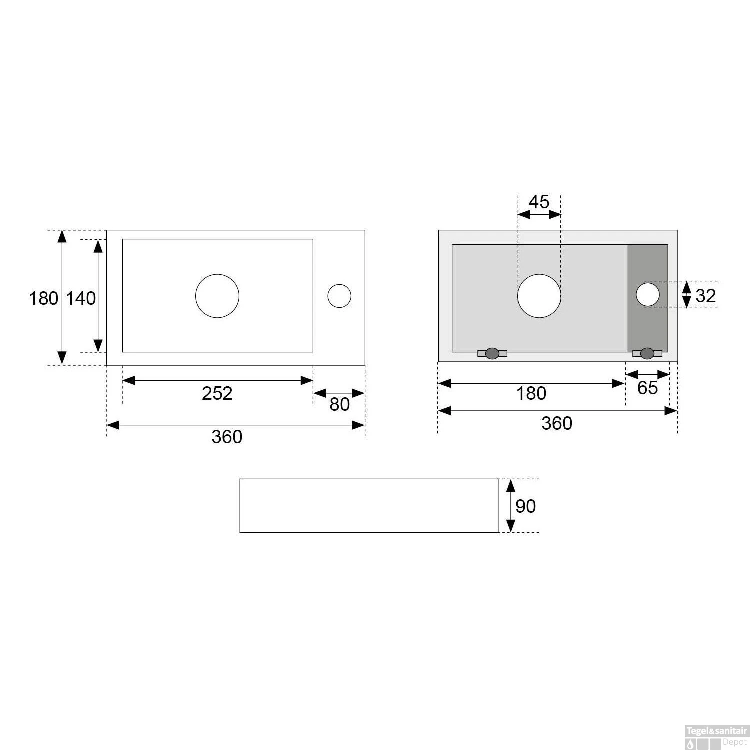 Specificaties Fontein Boss & Wessing Rinka 36x18x9 cm Kraangat Rechts Quartz: