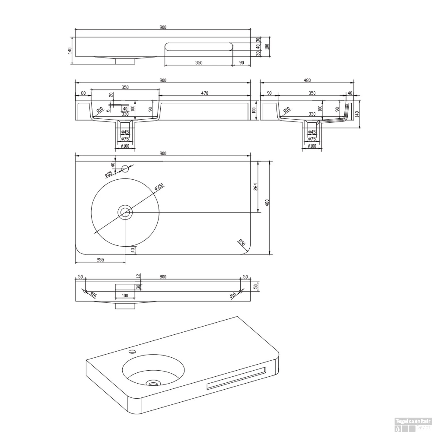 - – Materiaal: solid surface