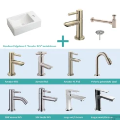 Specificaties: FonteinPack Houston Mat Wit Keramiek Rechts 37×23 cm RVS (Keuze uit 8 kranen)