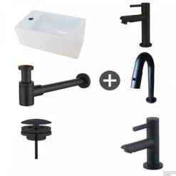 Specificaties Fonteinpack Rhea XXS Links Keramiek 30.5x18x11 cm Zwart (Keuze uit 4 kranen):