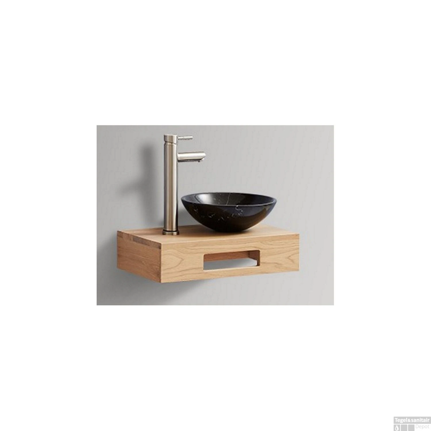 Let op: De plank beschikt niet over een gat voor de afvoer of de kraan. Deze dient u zelf te maken om de waskom en kraan naar uw wens te kunnen plaatsen. De fontein set wordt daarnaast geleverd exclusief sifon, waste en kraan. Deze kunt u naar eigen smaak uitkiezen.