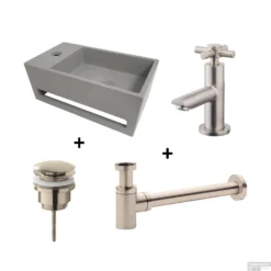 Fonteinset BWS Solid Surface met Handdoekhouder Links Betonlook Grijs / RVS (inclusief kraan, afvoer en sifon)