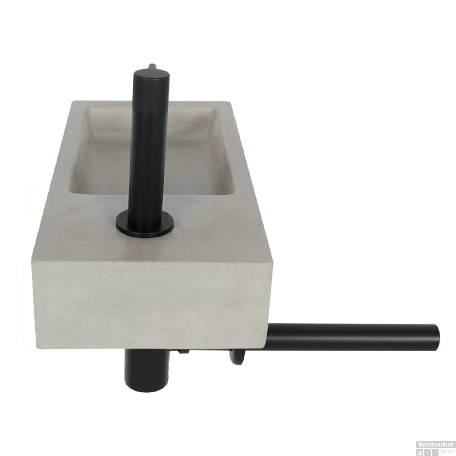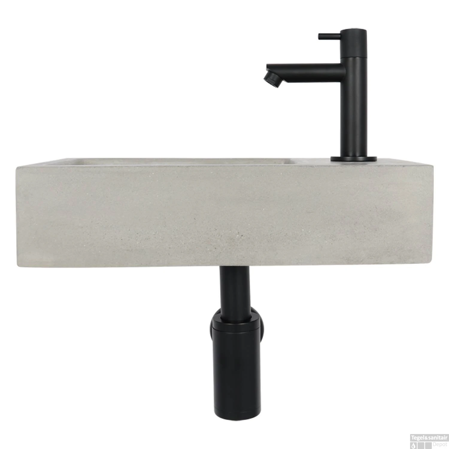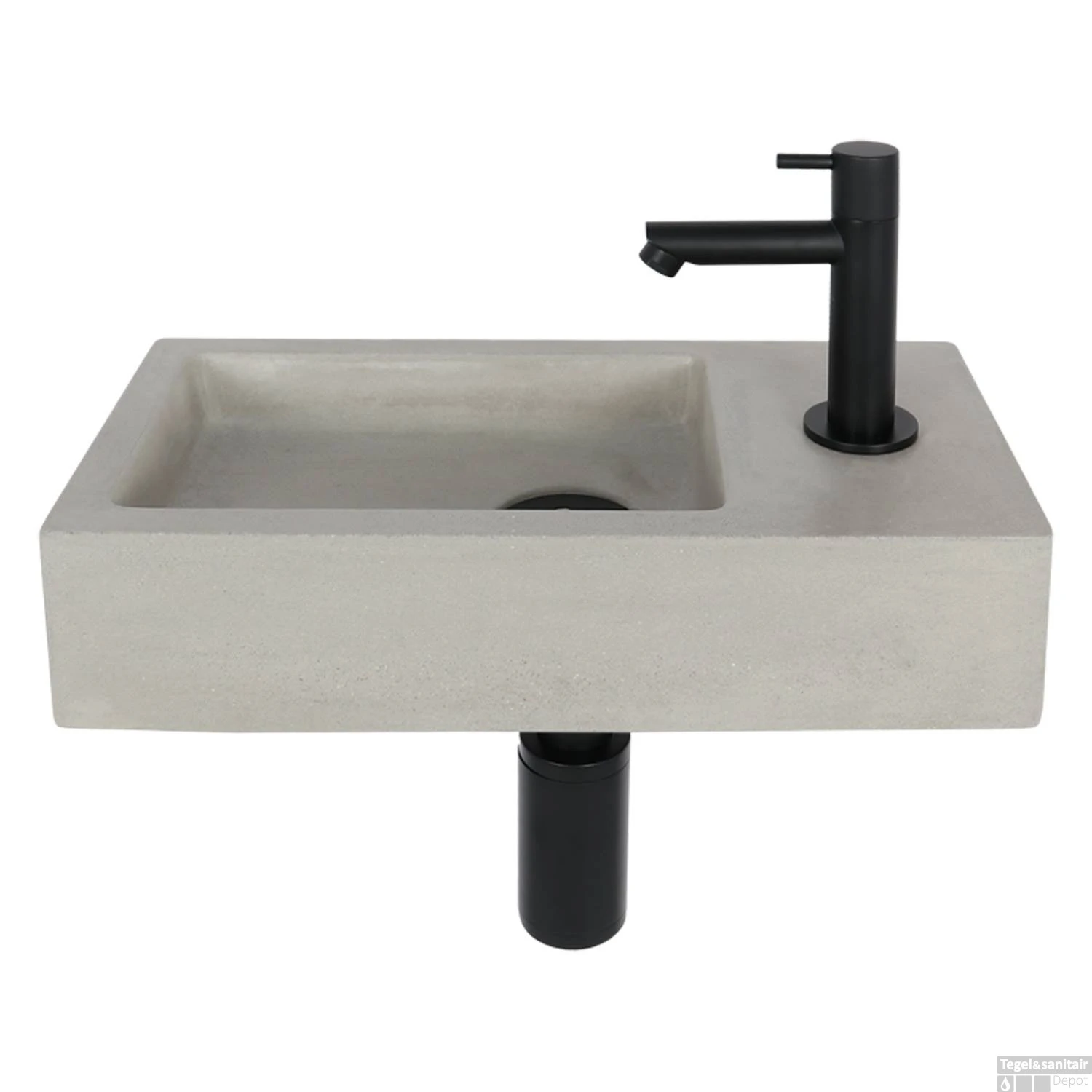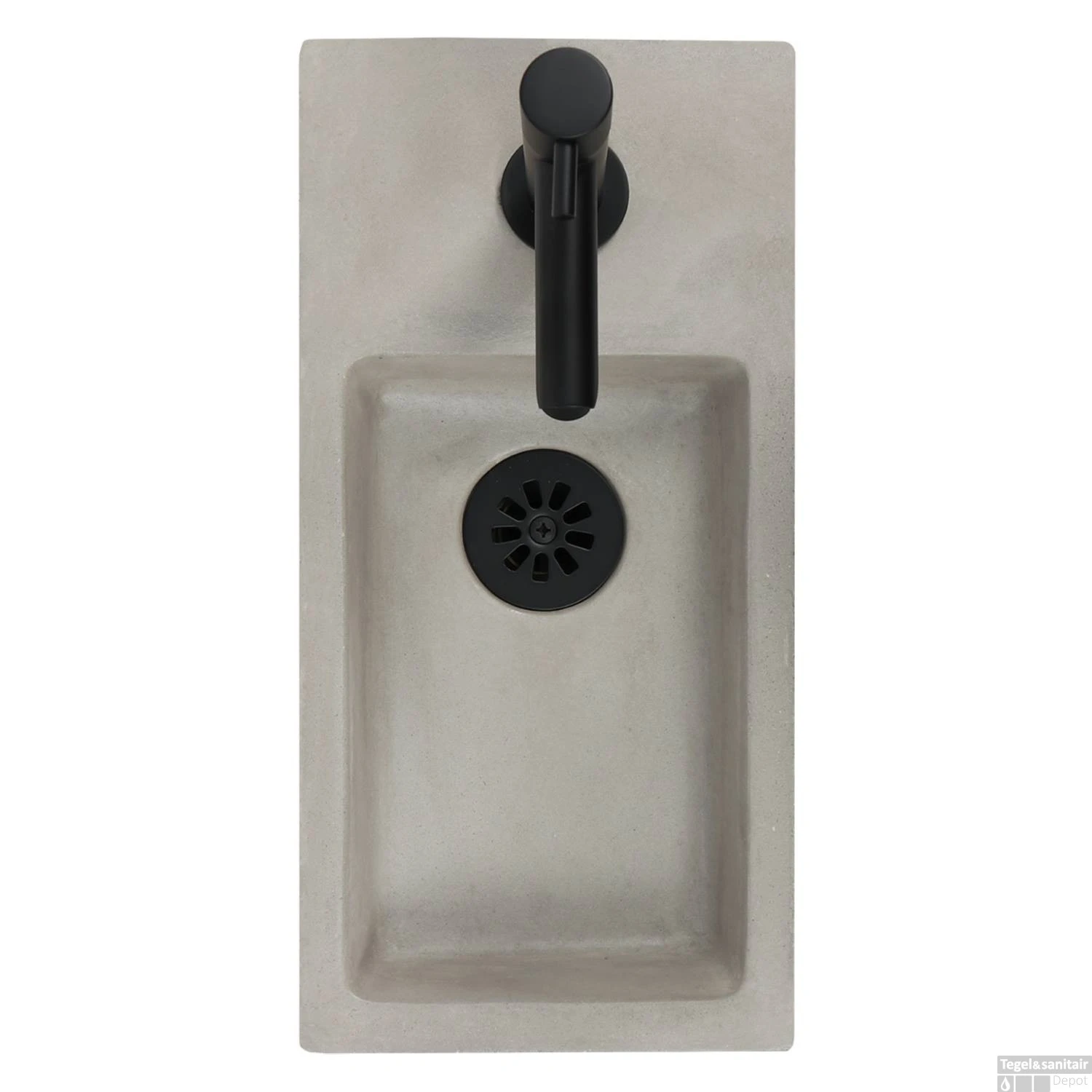 Fonteinset Differnz Jukon Rechts 38.5×18.5×9 cm Beton Grijs (inclusief mat zwarte kraan sifon en afvoer)