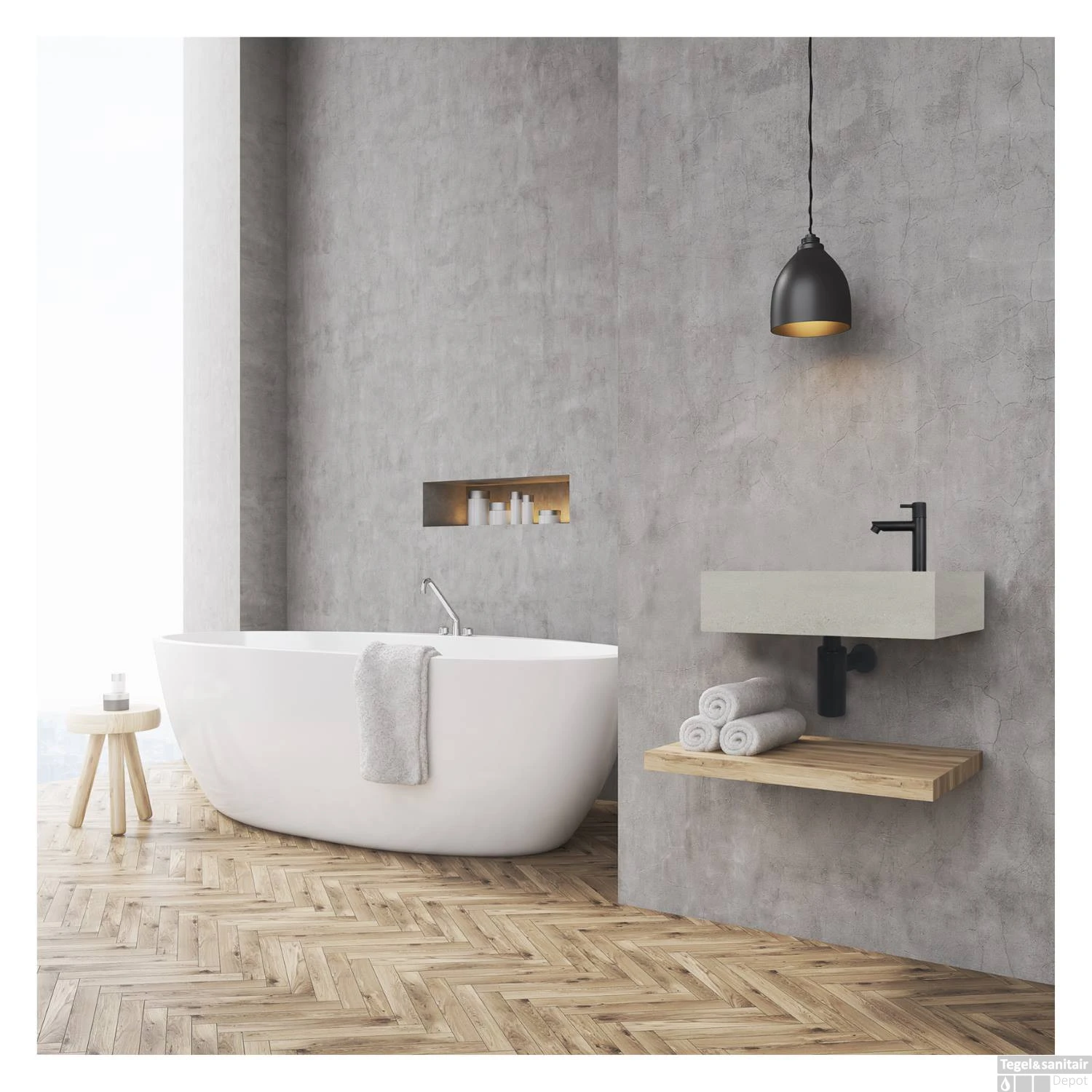 Met de fonteinset Jukon heeft u meteen alle benodigdheden in één pakket. Naast de betonnen wastafel krijgt u namelijk ook een stijlvolle matzwarte toiletkraan, een matzwarte plug en een bijbehorende zwarte sifon. Combineer de fonteinset bijvoorbeeld met een houten plank om de look helemaal af te maken en uw spullen makkelijk weg te kunnen zetten.