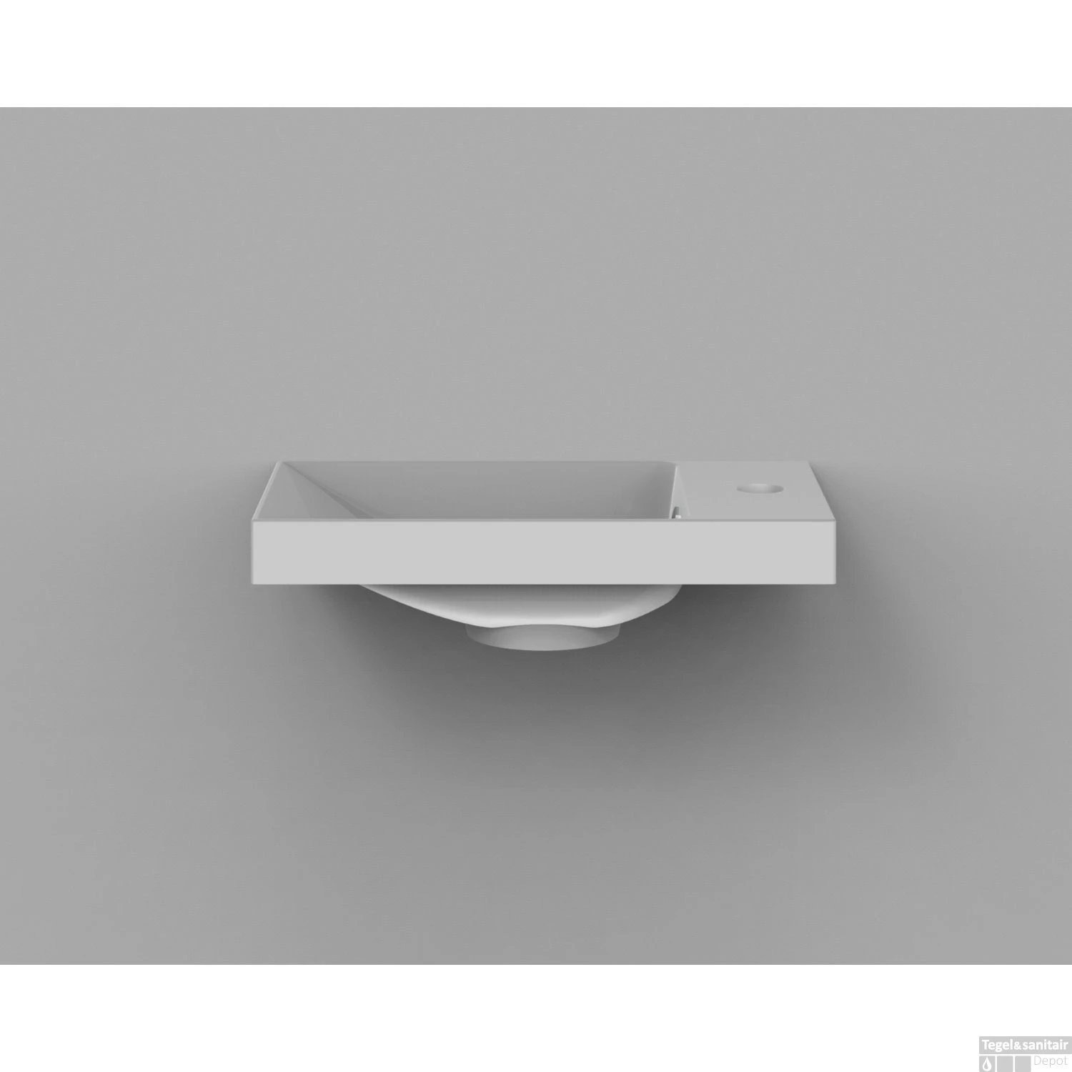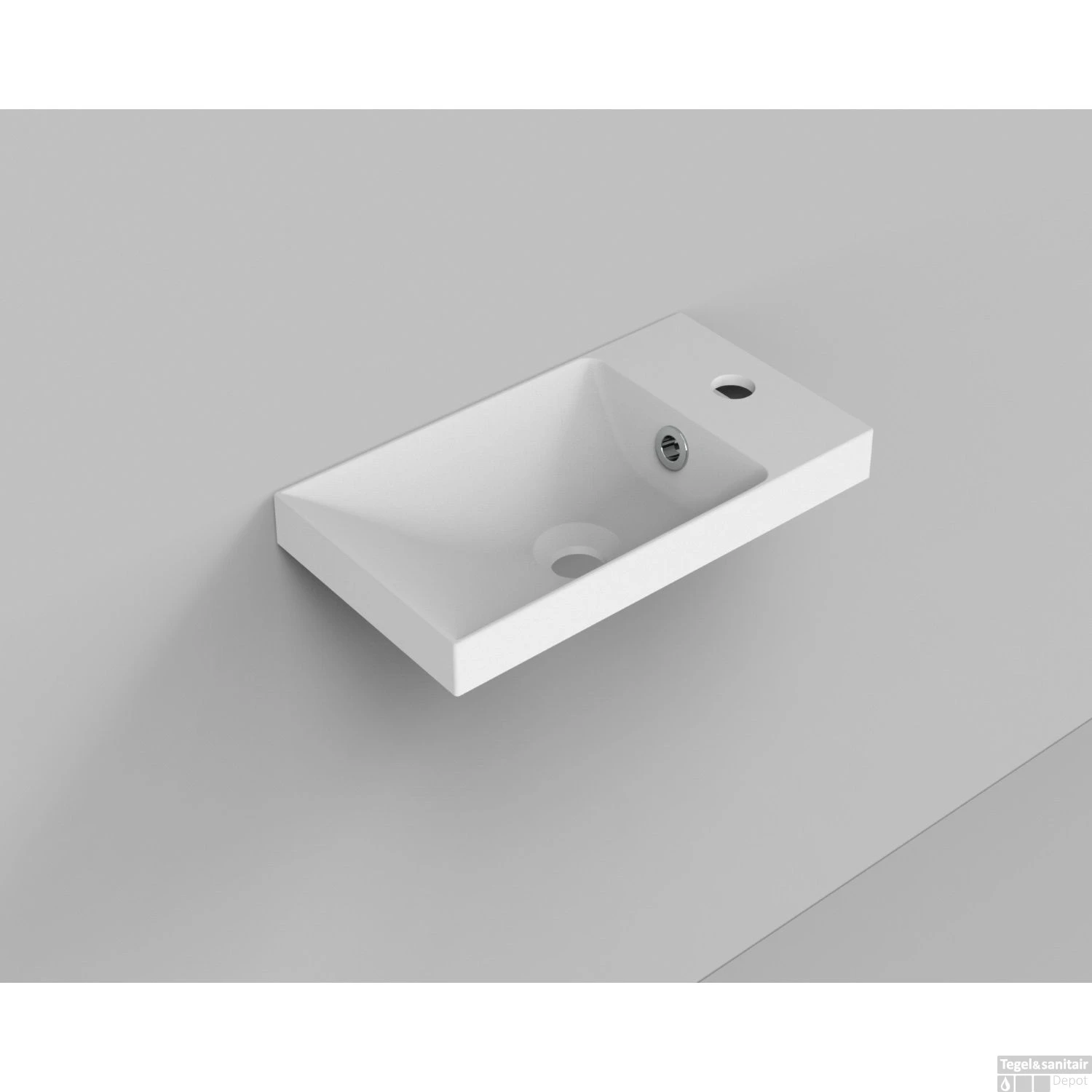 Wanneer beide artikelen op elkaar bevestigd zijn bedraagt de hoogte dus 27,6 cm. De wastafel is afgewerkt in een mat witte kleur en beschikt over een kraangat aan de zijkant. De tafel kan zowel links- als rechtsom geplaatst worden en is dus omkeerbaar. Om de set compleet te maken dient u nog een fonteinkraan, afvoer en sifon aan te schaffen.