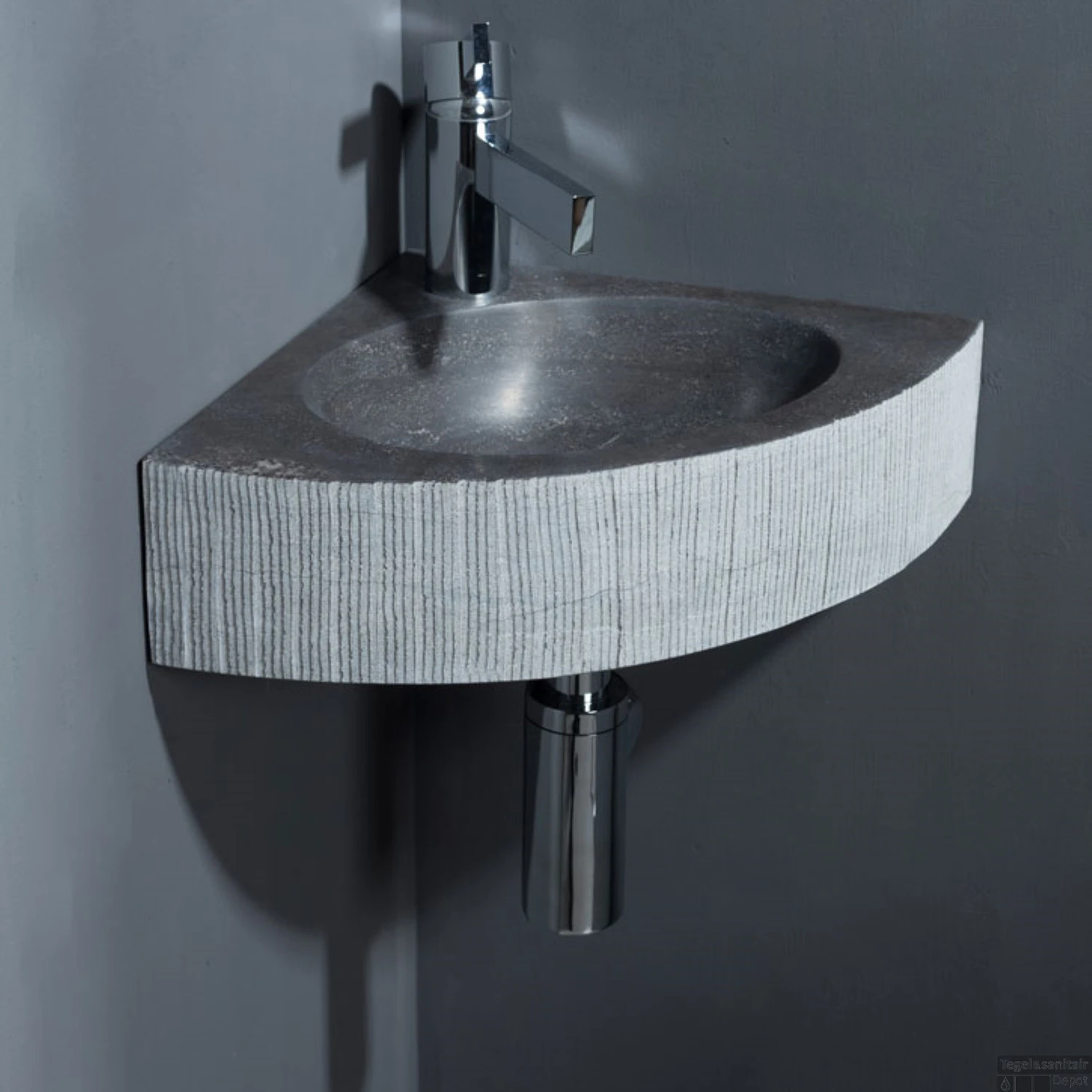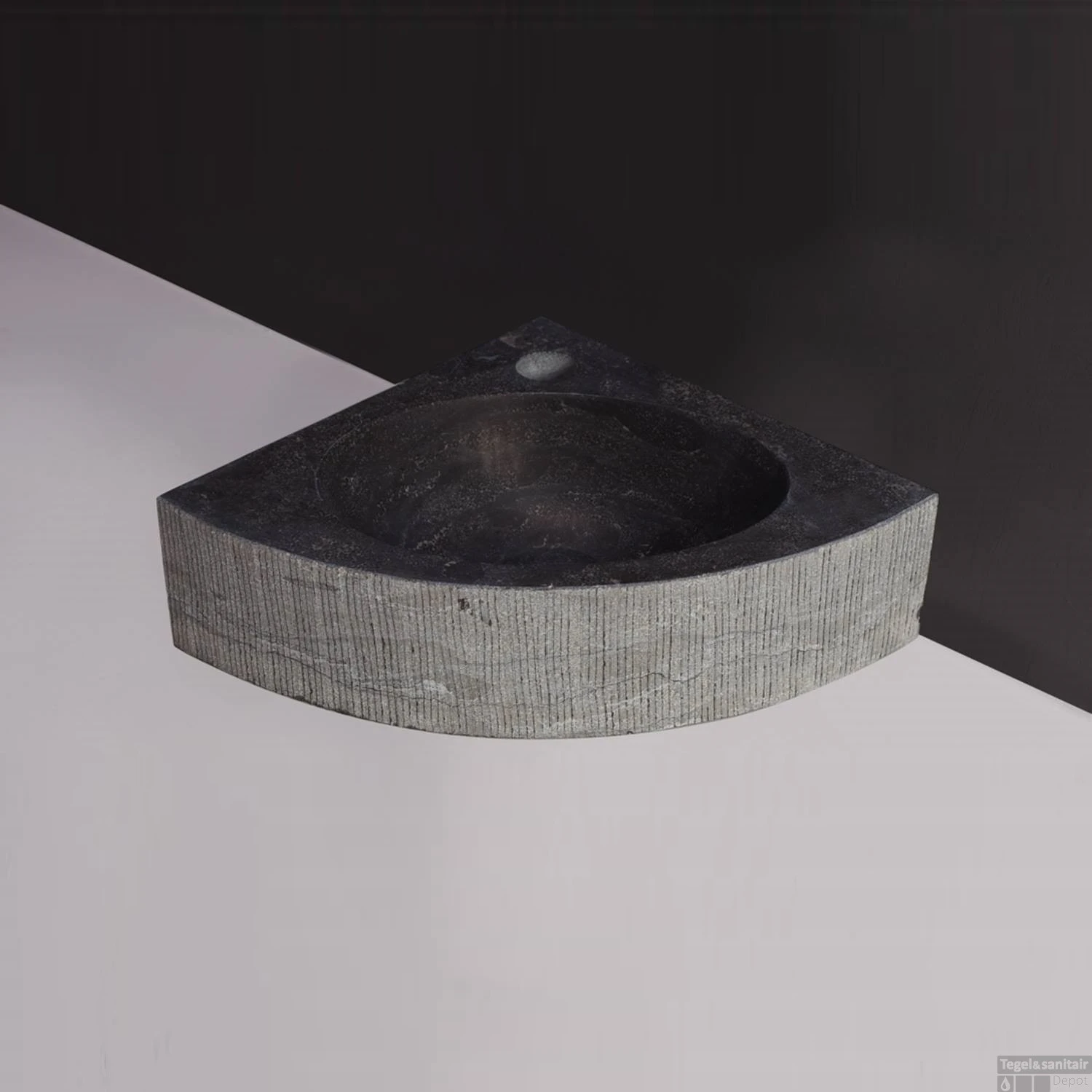 Deze prachtige natuursteen fontein is een lust voor het oog en een toevoeging voor badkamer of toilet. De fontein wordt geleverd met kraangat waardoor u een opbouwkraan naar keuze kunt toevoegen aan de fontein. De wastafel is gefrijnd, dat is een sierbewerking waarbij er groeven de wastafel worden toegevoegd, zoals te zien is aan de zijkanten. De fontein heeft een grijze kleur met antraciete tinten en een afmeting van 30x30x10 cm.