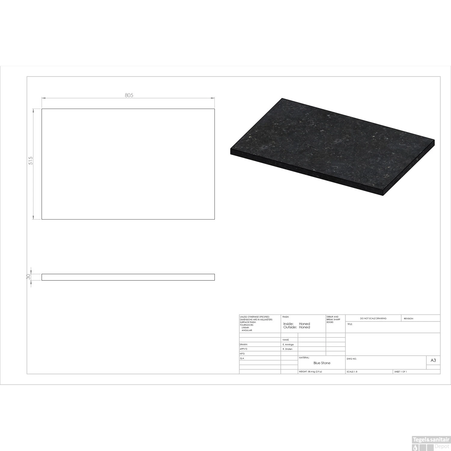 Dit schitterende hardsteen plateau is perfect geschikt om een opbouw waskom op te plaatsen. Het plateau wordt geleverd met een gezoete afwerking, dat betekent dat hij geschuurd is met een fijne korrel waardoor hij minder vatbaar is voor slijtage. Daarnaast zullen water en vuil er minder snel tussen blijven hangen waardoor het plateau zo lang mogelijk mooi blijft. Het plateau heeft een afmeting van 80.5×51,5×3 cm.