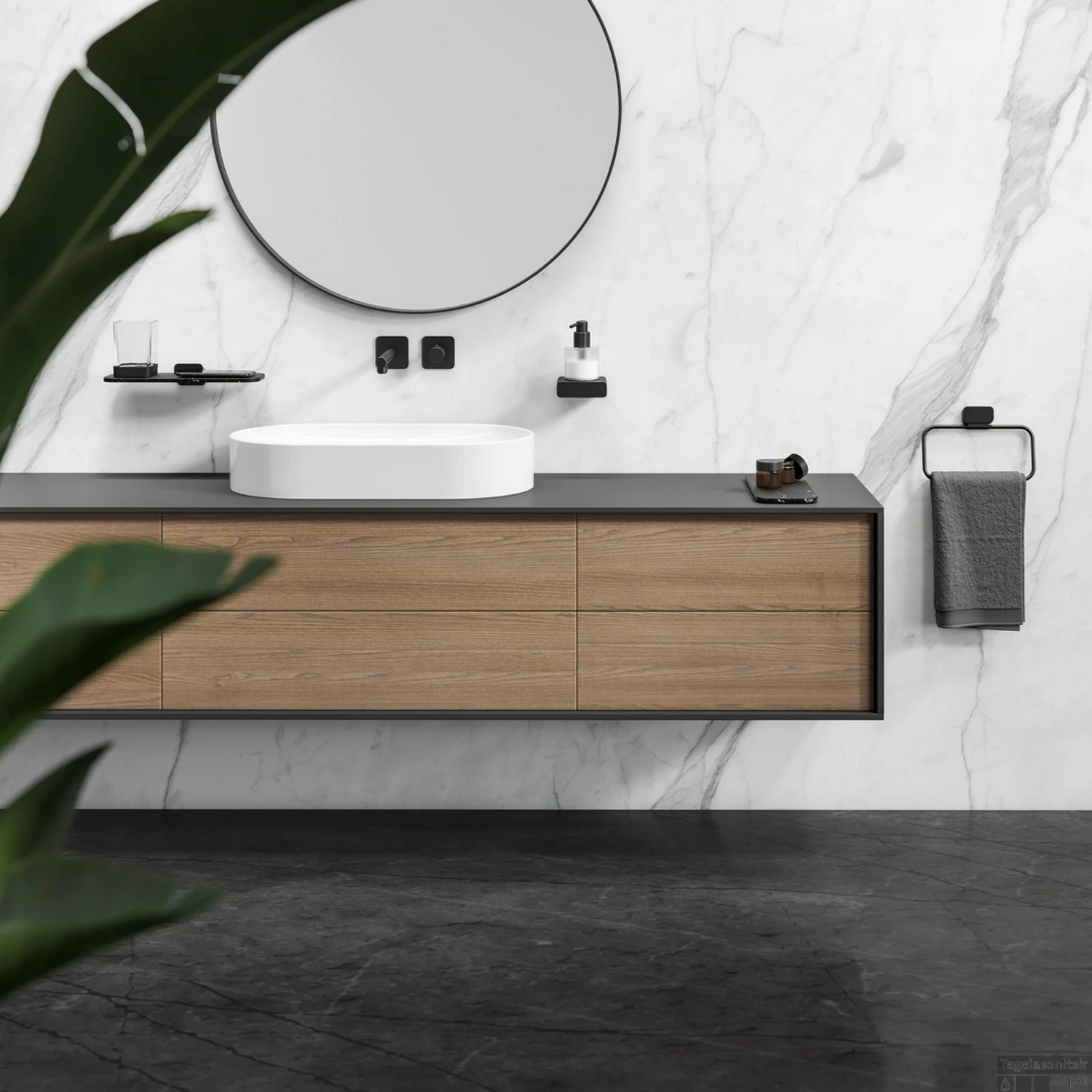 Deze glashouder met planchet is perfect voor de moderne en klassieke badkamer. Het product heeft een tijdloze uitstraling en de organische vormen geven het ontwerp elegantie. Dit 2-in-1 ontwerp geeft extra opbergruimte dankzij het matzwarte planchet met marmerlook. Het iconische design is gemaakt van materialen met hoogwaardige kwaliteit en gaat jarenlang mee. Het wordt dan ook veel gebruikt in hotels en cruiseschepen over de hele wereld. Daarnaast bied Geesa de Shift collectie met een garantie van maar liefst 15 jaar.