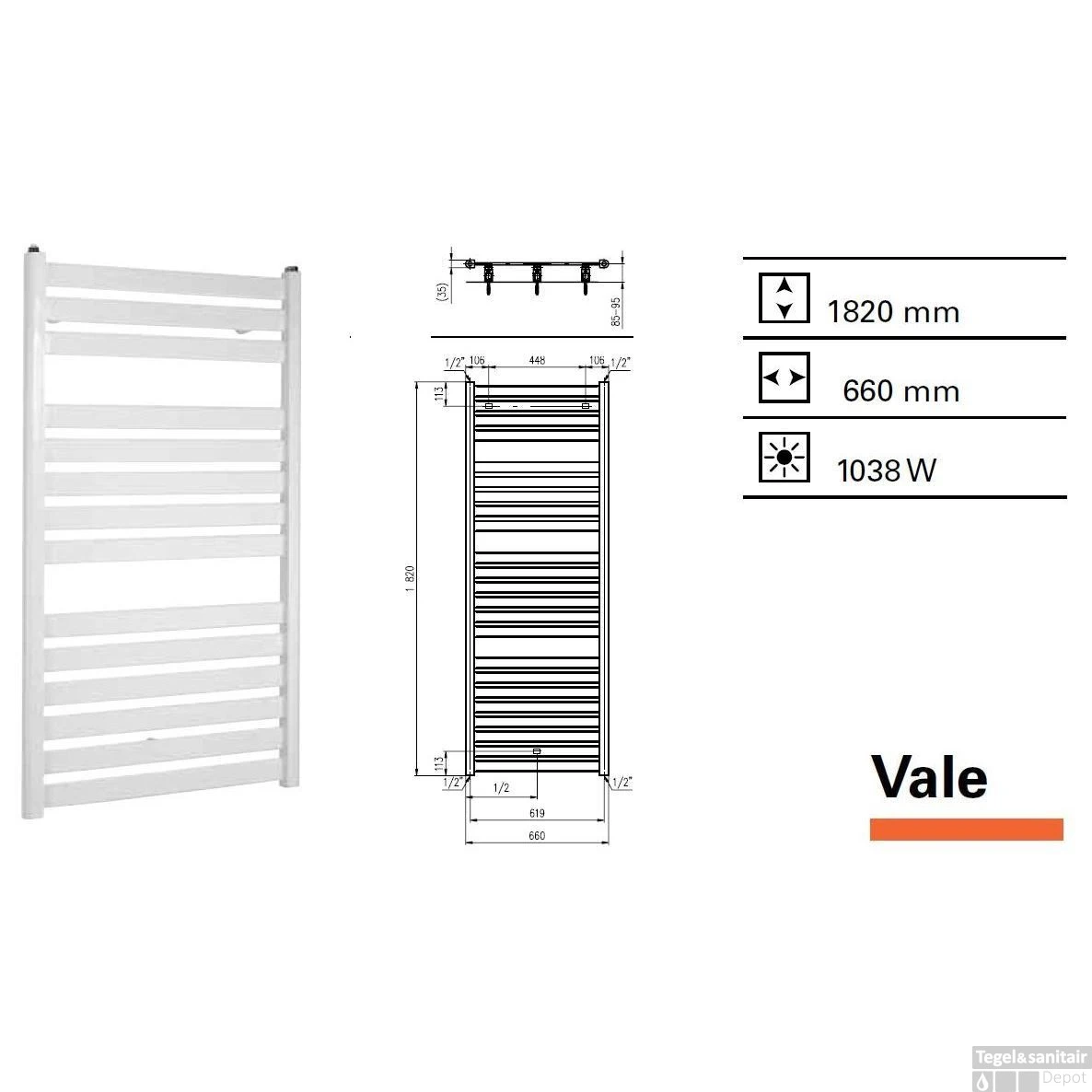 Specificaties Designradiator Vale 1820 x 660 mm Pearl Grey:
