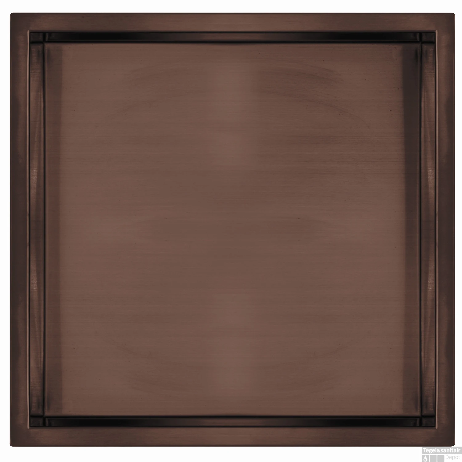 De afmetingen van deze inbouwnis zijn: 30,5 x 30,5 cm met een diepte van 8 cm. De flens heeft een breedte van 1,5 cm. Dit artikel is gemaakt van 100% RVS en is ook verkrijgbaar in 5 kleuren. De inbouwnis is gemaakt in een koperen kleur met een geborstelde afwerking.
