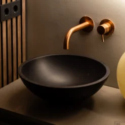 Een waskom zorgt voor een chique en sfeervolle uitstraling in uw badkamer, de quartz stenen waskom heeft geen kraangat of overloop. Daardoor kan u heel mooi een inbouw kraan of een hoge wastafelkraan plaatsen. Het model is van Quartz en dat is nu nog uniek. Quartz is een gesteente met een meer of minder uitgesproken antracietgrijze kleur, en dient wel een paar keer per jaar behandeld te worden met een impregnatie.