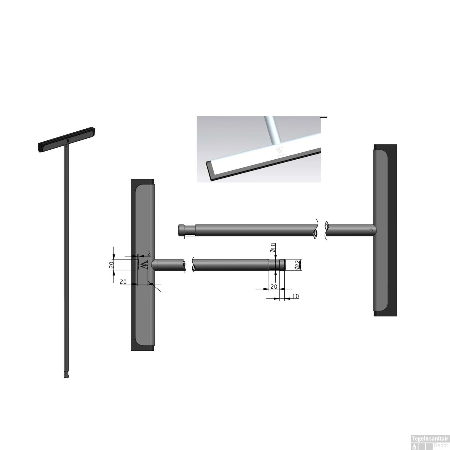 Eenvoudig te bevestigen aan de muur. U heeft hem altijd bij de hand, en in de buurt. Inclusief een grijs reserve rubber. Dus u heeft geen last van zwarte strepen bij het wissen. Het formaat is handzaam en inclusief Comfort & Safety grip.