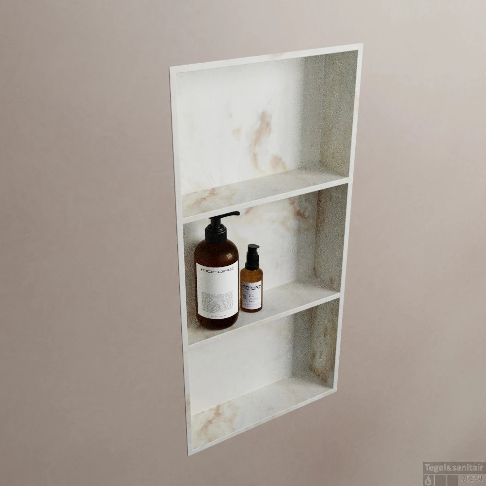 De Solid Surface inbouw nis is een aanwinst voor iedere badkamer of toilet en met alle verschillende maten en kleuren ook een mooie en efficiënte accessoire. De Mondiaz nis neemt geen extra ruimte in omdat de nis ingebouwd kan worden maar je kan hem ook eenvoudig rechtstreeks op de muur bevestigen. Zo staan al je douche of badproducten binnen handbereik. De Mondiaz Solid Surface (inbouw) nis mag daarom niet ontbreken in de badkamer of toiletruimte waar de ruimte vaak beperkt is. De nis is daarbij een mooie functionele ruimtebesparing en het ideale product om jouw mooie spulletjes in uit te stallen.