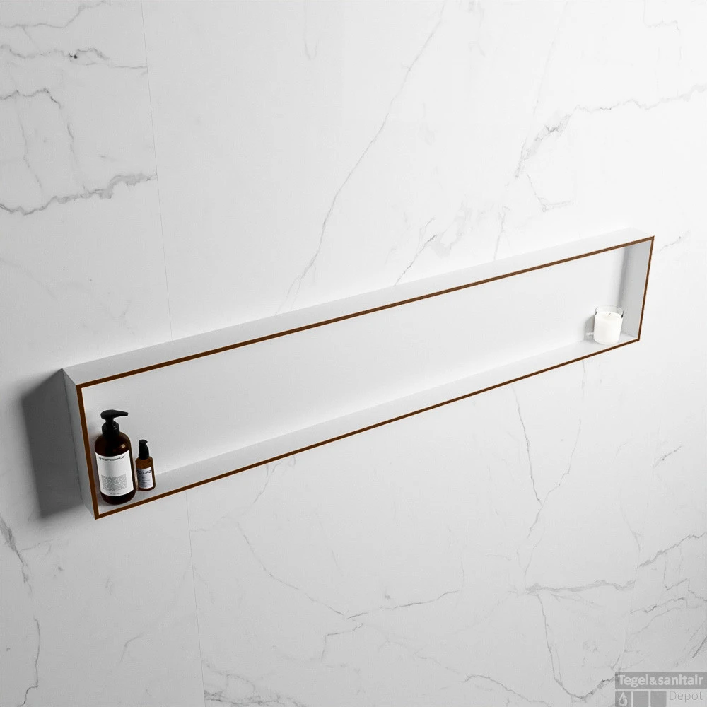 De Solid Surface inbouw nis is een aanwinst voor iedere badkamer of toilet en met alle verschillende maten en kleuren ook een mooie en efficiënte accessoire. De Mondiaz nis neemt geen extra ruimte in omdat de nis ingebouwd kan worden maar je kan hem ook eenvoudig rechtstreeks op de muur bevestigen. Zo staan al je douche of badproducten binnen handbereik. De Mondiaz Solid Surface (inbouw) nis mag daarom niet ontbreken in de badkamer of toiletruimte waar de ruimte vaak beperkt is. De nis is daarbij een mooie functionele ruimtebesparing en het ideale product om jouw mooie spulletjes in uit te stallen.