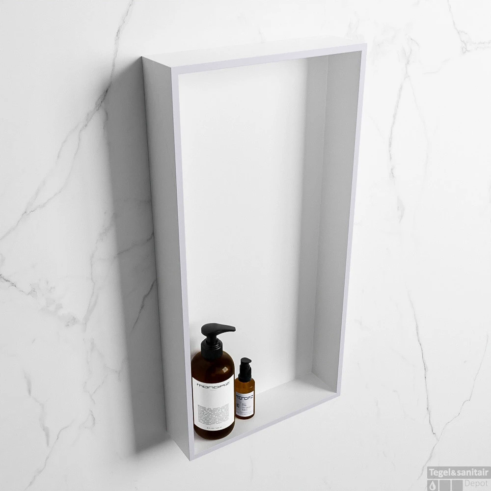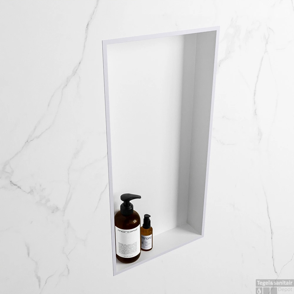 De Solid Surface inbouw nis is een aanwinst voor iedere badkamer of toilet en met alle verschillende maten en kleuren ook een mooie en efficiënte accessoire. De Mondiaz nis neemt geen extra ruimte in omdat de nis ingebouwd kan worden maar je kan hem ook eenvoudig rechtstreeks op de muur bevestigen. Zo staan al je douche of badproducten binnen handbereik. De Mondiaz Solid Surface (inbouw) nis mag daarom niet ontbreken in de badkamer of toiletruimte waar de ruimte vaak beperkt is. De nis is daarbij een mooie functionele ruimtebesparing en het ideale product om jouw mooie spulletjes in uit te stallen.