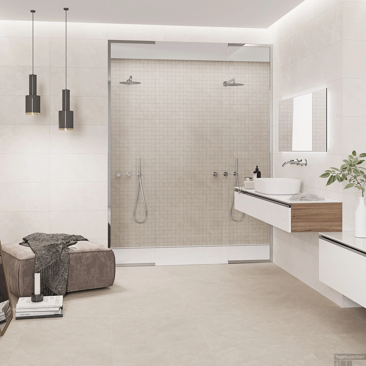 Met de Mozaïek krijgt de ruimte een unieke uitstraling omdat het accent wordt gelegd op de kleine steentjes. U kunt echt spelen met Mozaïek. Vul er een nis mee, tegelrooster van uw douchegoot maar een volledige wand kan natuurlijk ook. Daarnaast kunt u spelen met de kleur voeg. Een lichte voeg brengt weer een heel ander geheel dan een donkere voeg. Combineer de voeg met de kleur van een andere tegel en u creëert weer één geheel door met dezelfde kleur te werken.