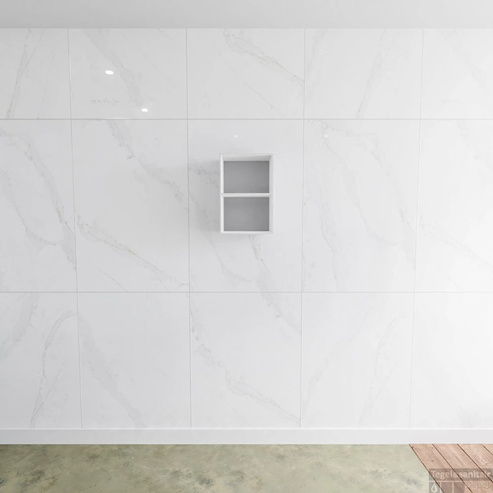 Deze hangende nis zorgt voor een moderne en schone look in uw badkamer. De nis is geschikt voor in of opbouw. Zo kunt u de nis aan een wand bevestigen, maar ook in een wand weg laten vallen.