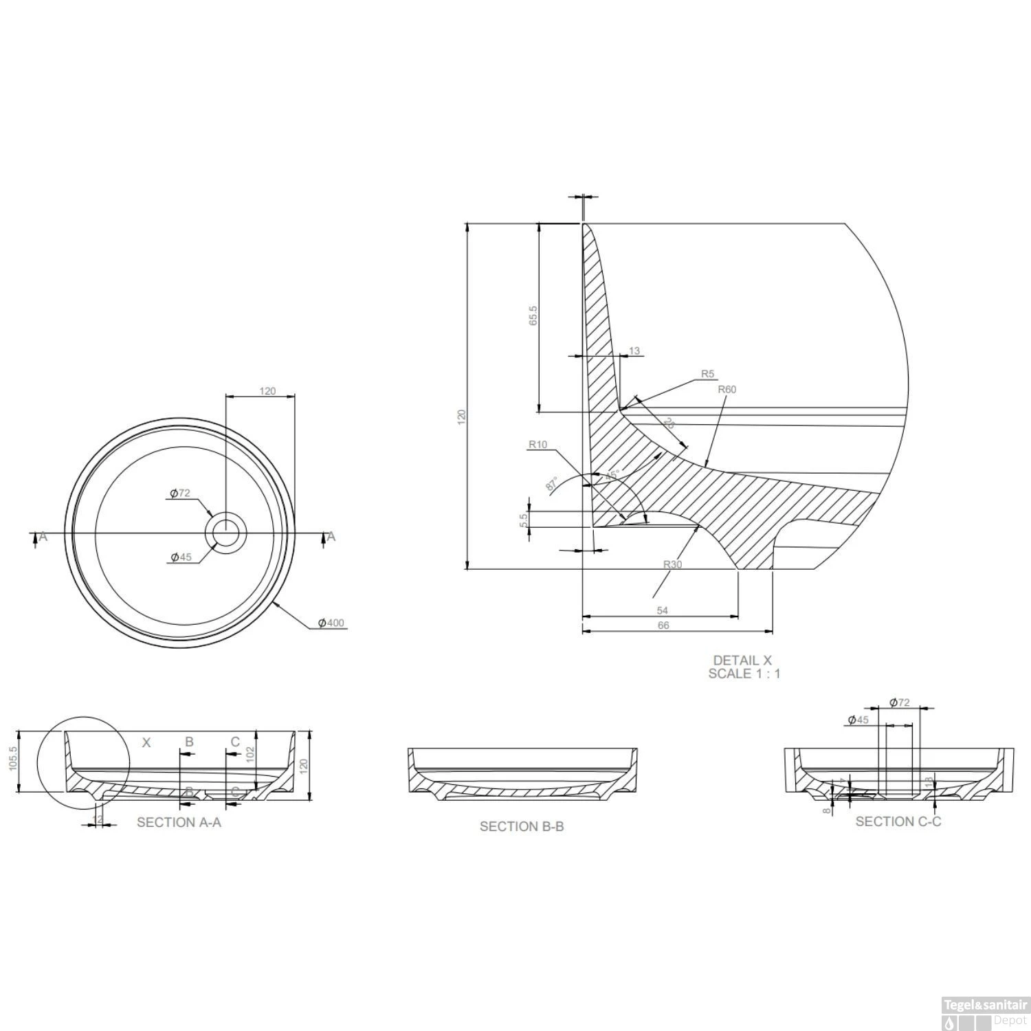 Deze opbouw waskom is geproduceerd in de kleur mat wit en heeft een ronde vorm. De hoogte van deze waskom bedraagt 12 cm, de diepte 40 cm en de breedte 40 cm. Het matte, fluweelachtige oppervlak van de wasbak voelt prettig aan en is makkelijk schoon te maken en te onderhouden.