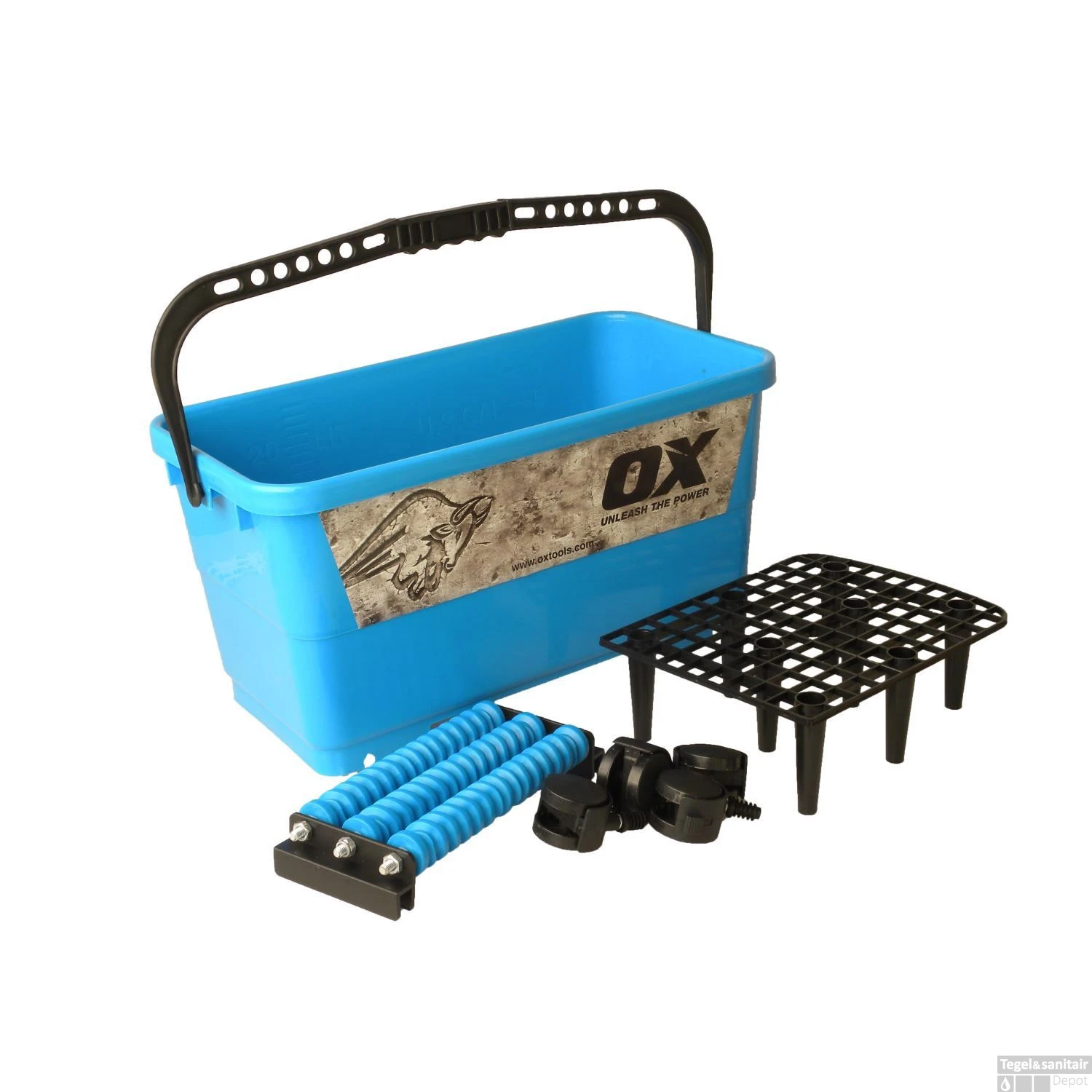 De hoge kwaliteit schoonmaakbasin van Ox is een geweldige uitbreding voor alle doe-het-zelvers. Door gebruik te maken van het grootte schoonmaakbasin Ox heeft u altijd genoeg ruimte. De schoonmaakbasin word geleverd met drie hoge kwaliteit rollers. Ox is al jaren een marktleider in tegelgereedschap en andere benodigdheden voor het leggen van uw vloer.