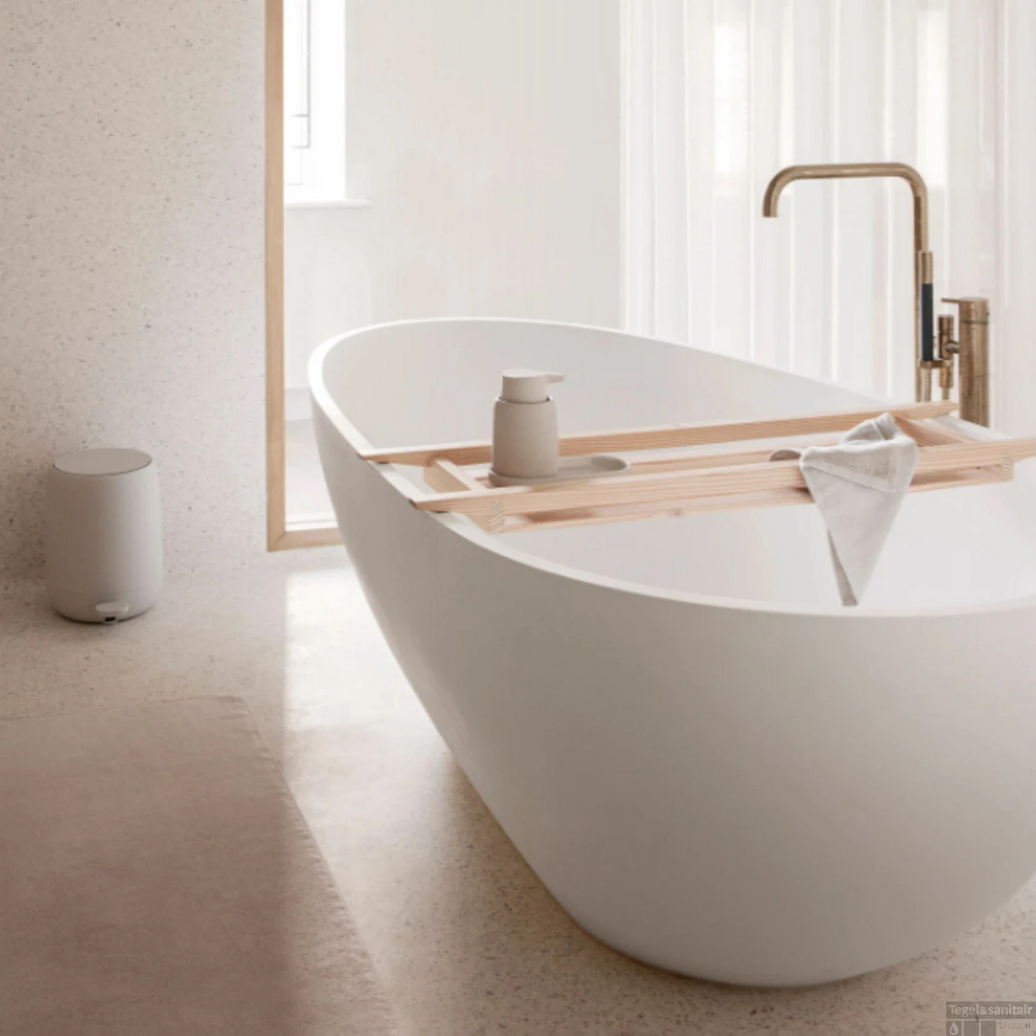 Deze fraaie moonbeam witte pedaalemmer van Blomus komt uit de Sono serie. De soft-close functie maakt het gemakkelijk om de binnenklep te openen met het voetpedaal. Daarnaast bevat de pedaalemmer een uitneembare en makkelijk schoon te maken kunststof emmer. Verkrijgbaar in meerdere kleuren. De pedaalemmer is 25.5 cm hoog, 19.7 cm breed en de lengte is 24.2cm.