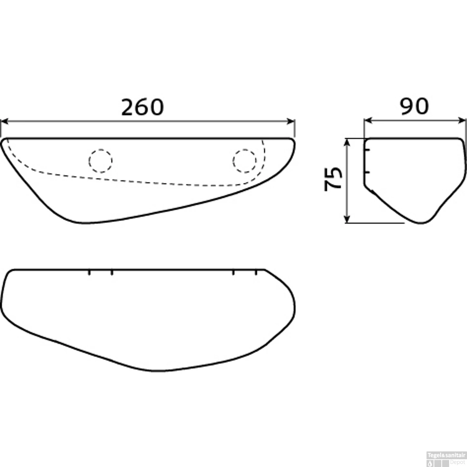 Tijdelijke ophanging wordt standaard meegeleverd, u dient zelf voor permanente verlijming zorg te dragen (bv Montage 100 Rectavit). Vergeet deze dus niet aan te schaffen. De afmeting is 26x9x7.5 (bxdxh).