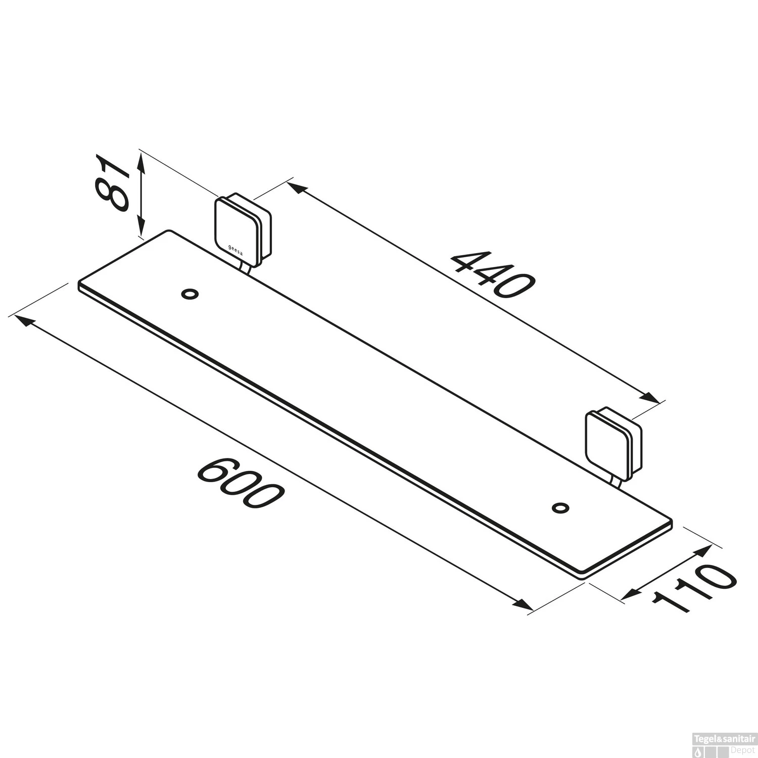 De planchet is gemaakt van metaal met glas en wordt aan de muur bevestigd met schroeven. Hij heeft een breedte van 60cm, een hoogte van 12.9cm en een diepte van 8.0cm. Hij weegt 1552 gram en is Chroom met een planchet voor het neerleggen van bijvoorbeeld gastendoekjes of iets dergelijks.
