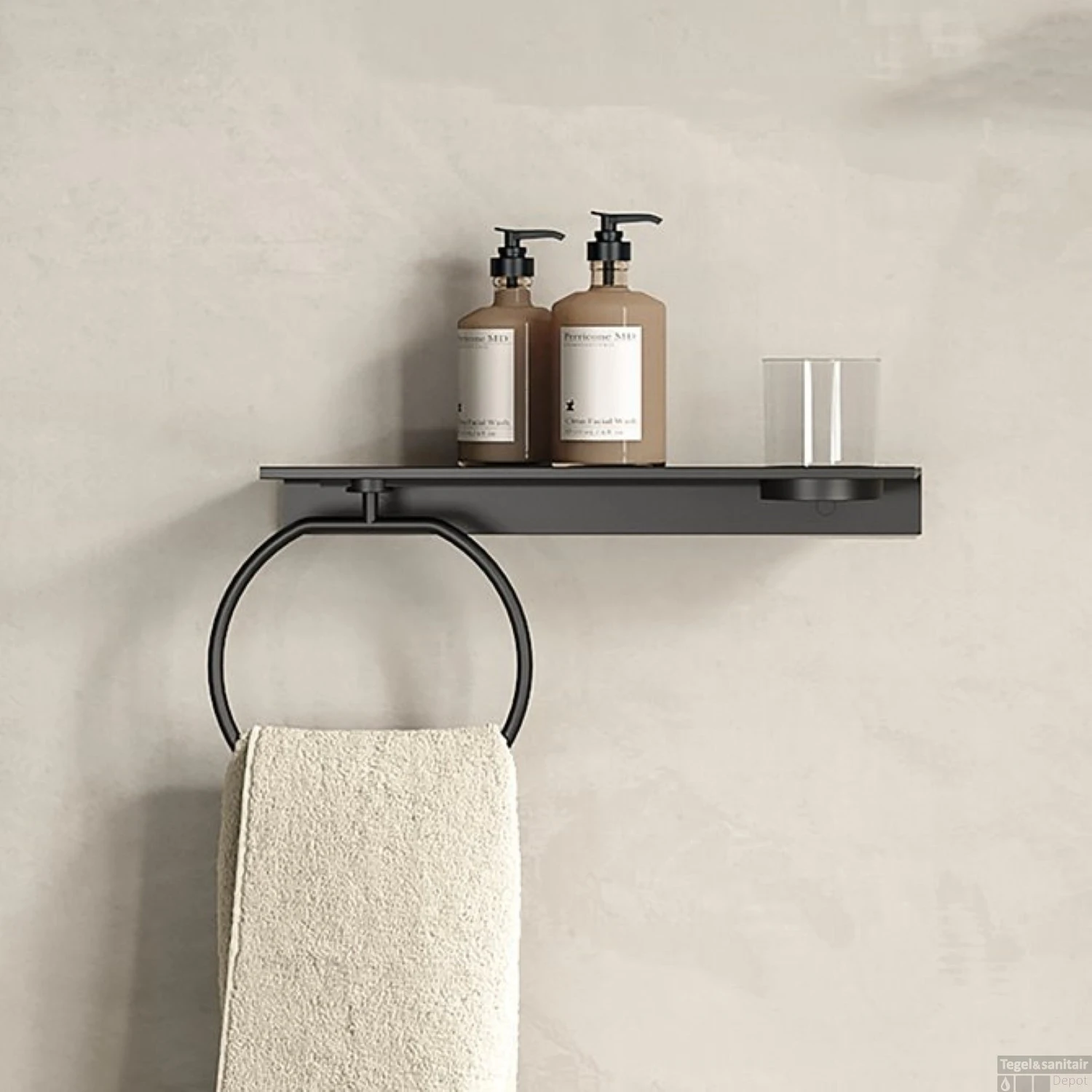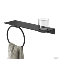 Planchet met Glas en Handdoekring Geesa Leev 40 cm Zwart